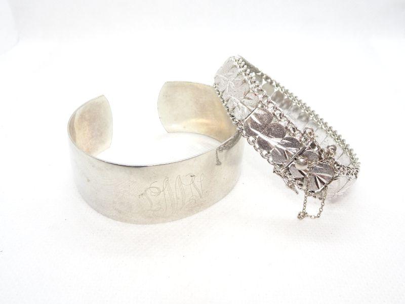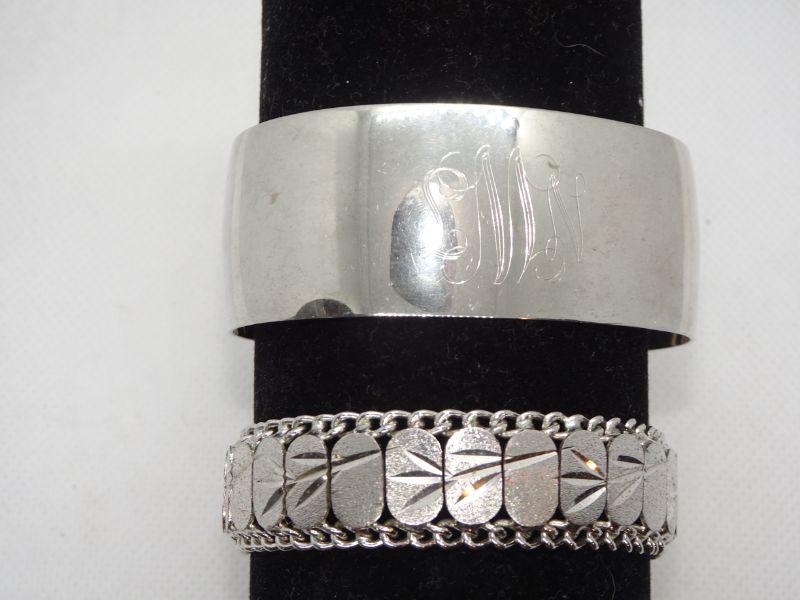 2 Silver Tone Bracelets, Cuff & Link, Monogramed