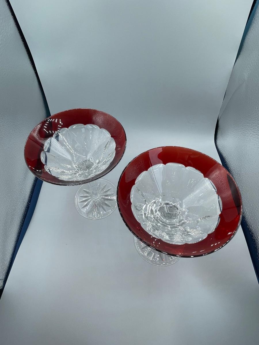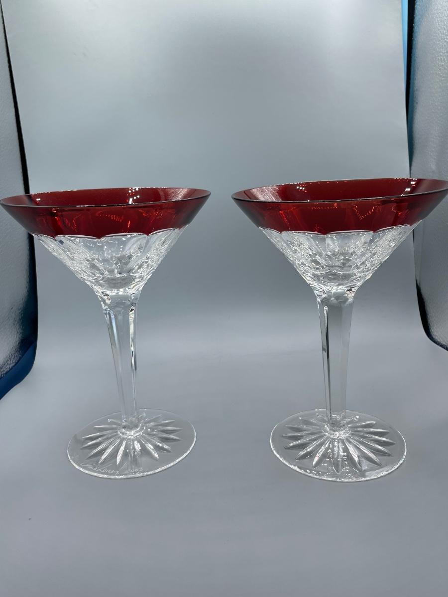 2 Simply Red Waterford Crystal Martini Glasses Signed