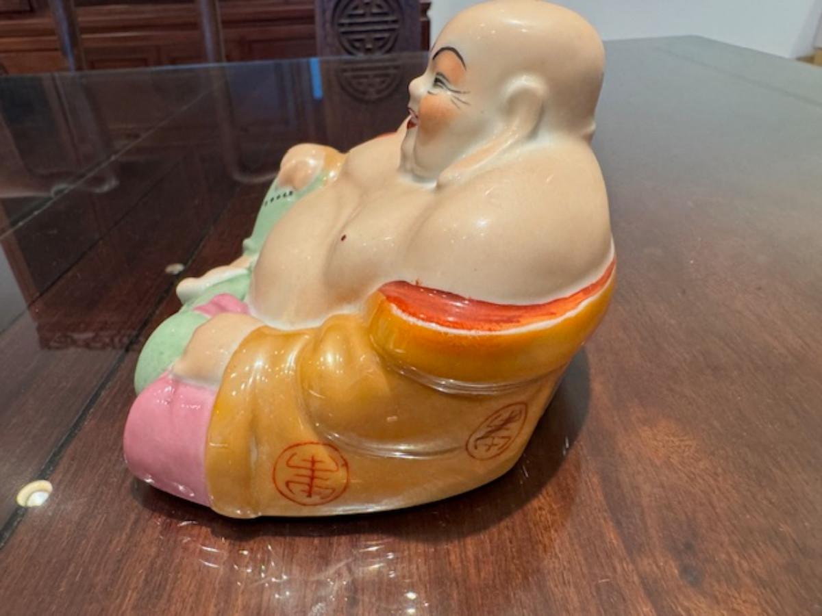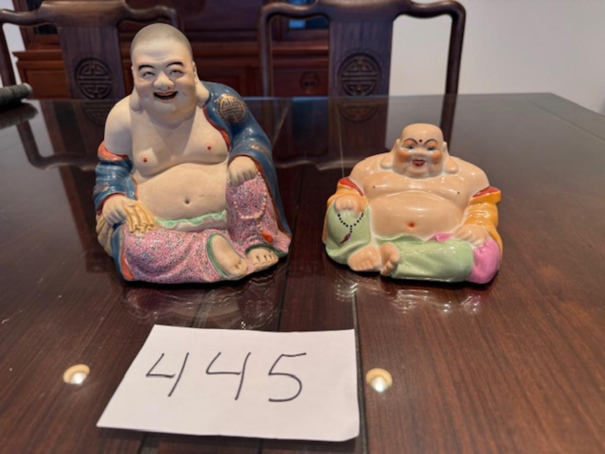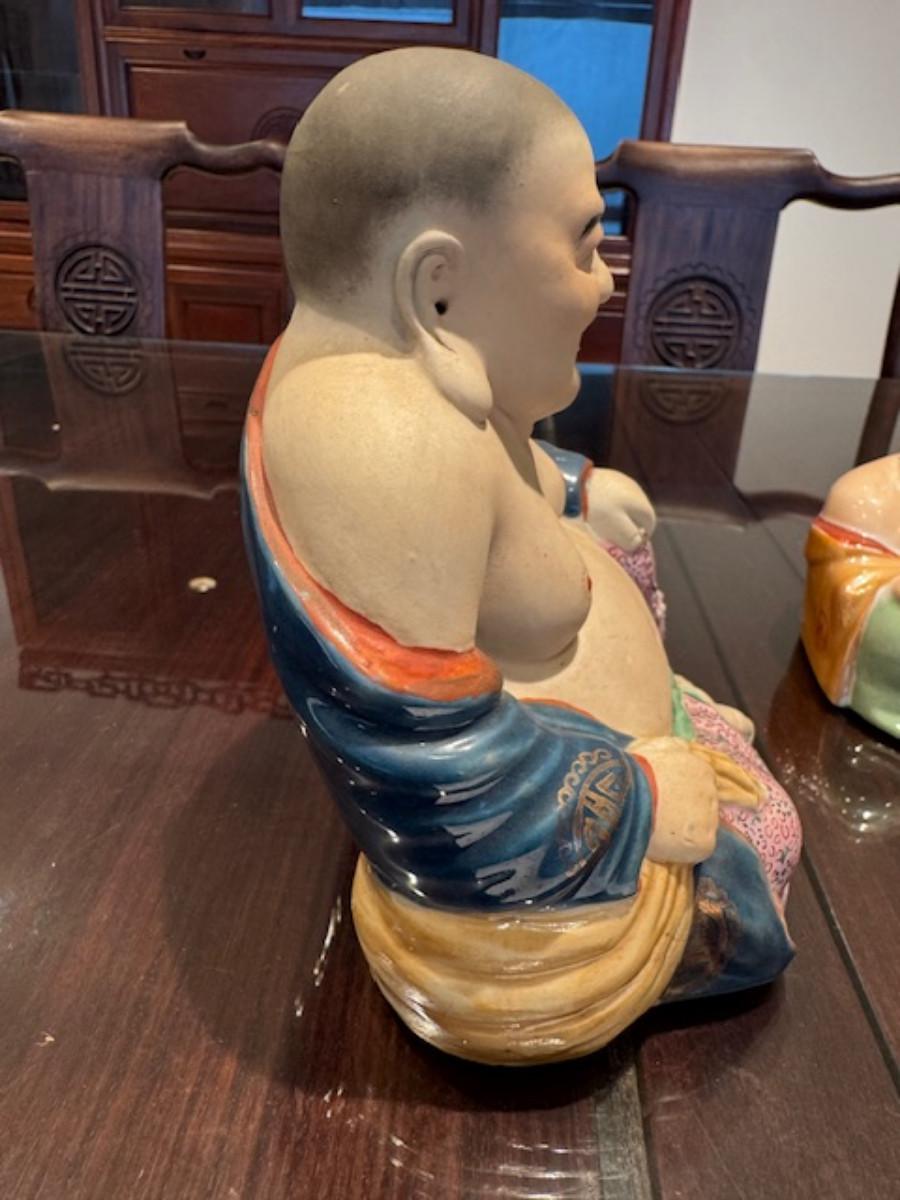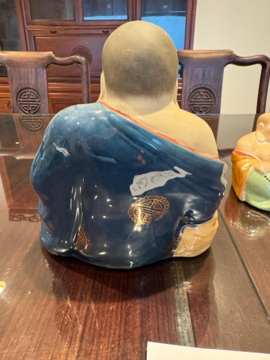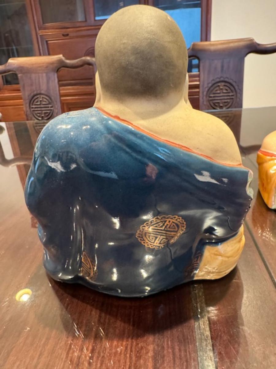 smaller Buddha has some of the glaze pealing off in a spot on the back about 1" long