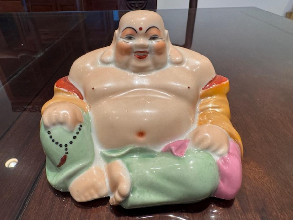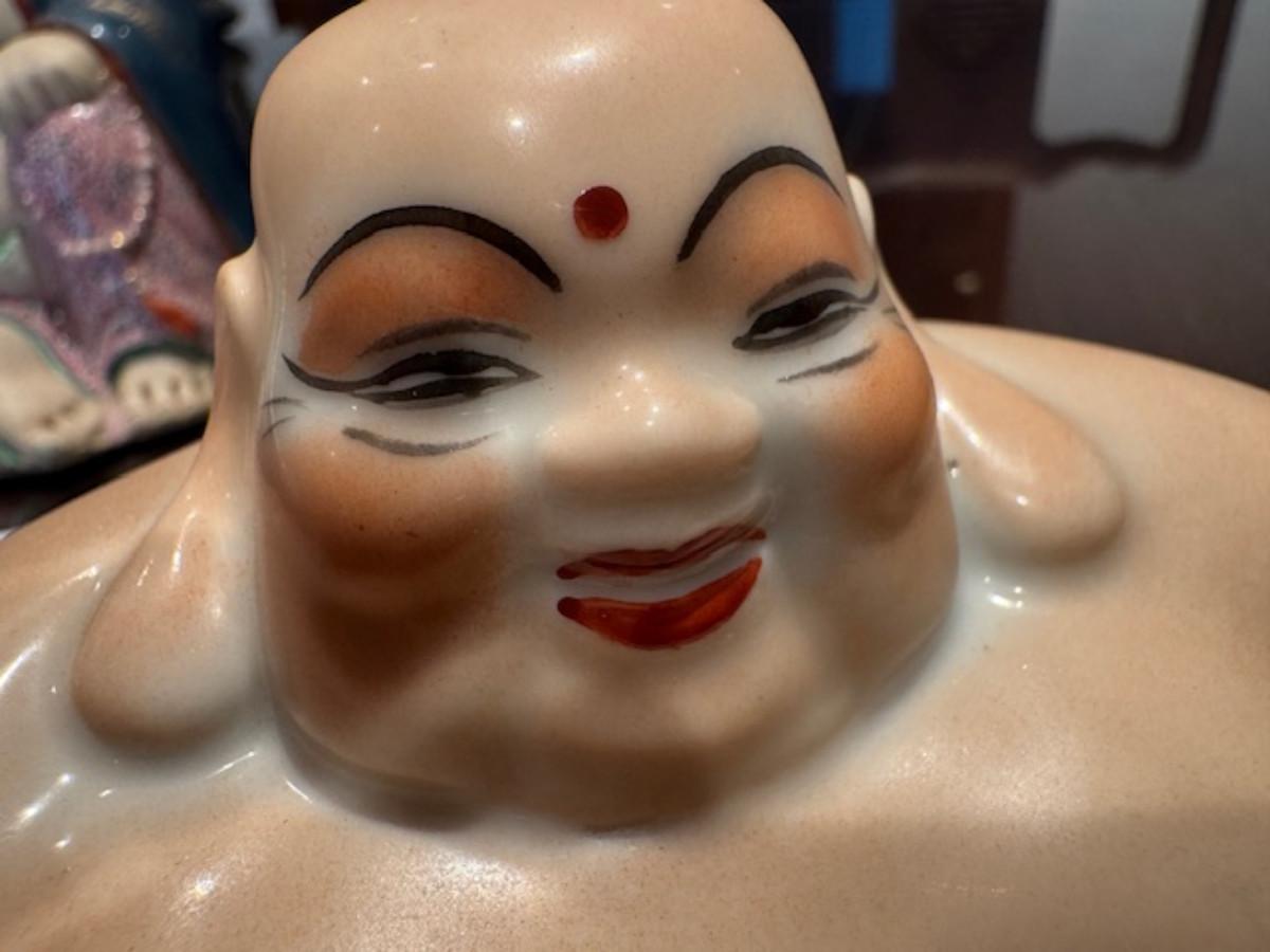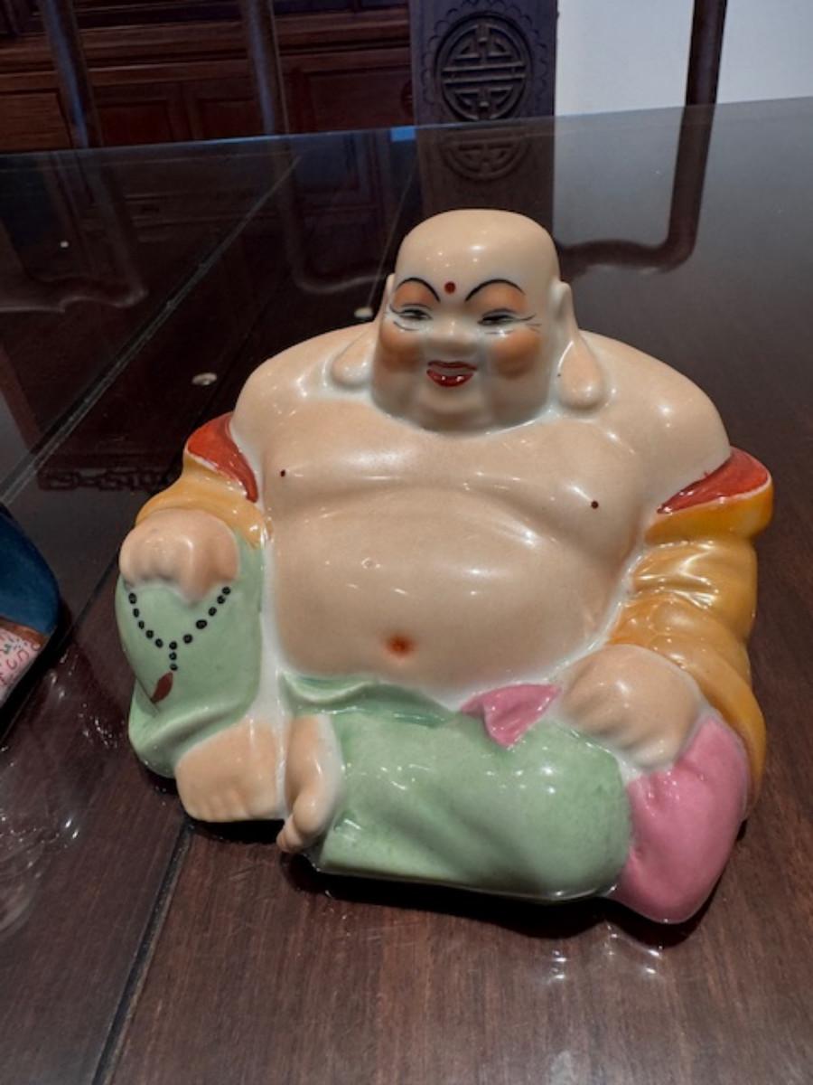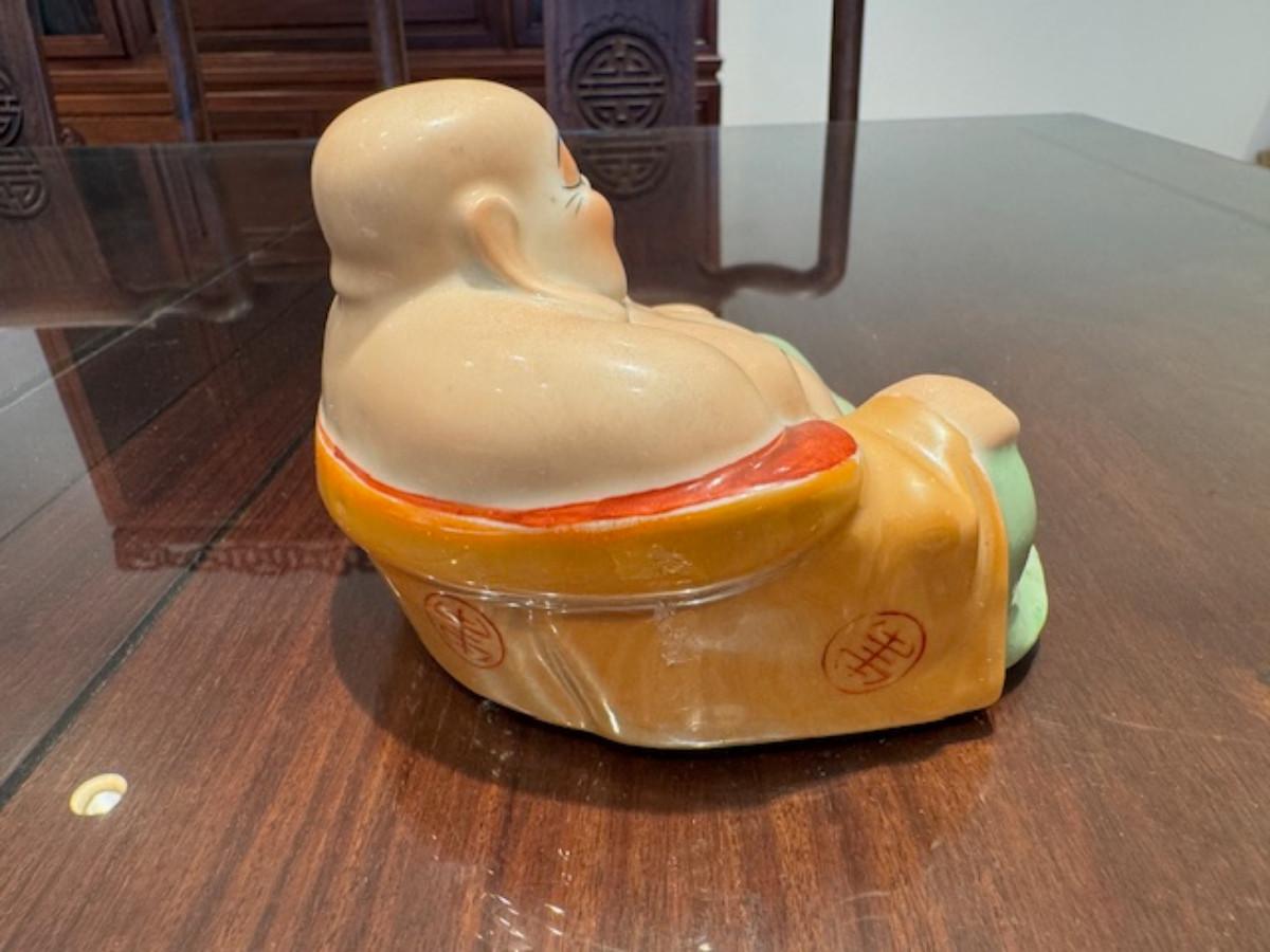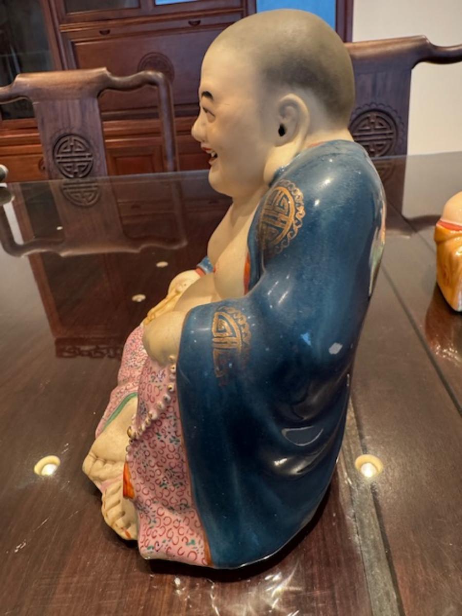 smaller Buddha has some of the glaze pealing off in a spot on the back about 1" long