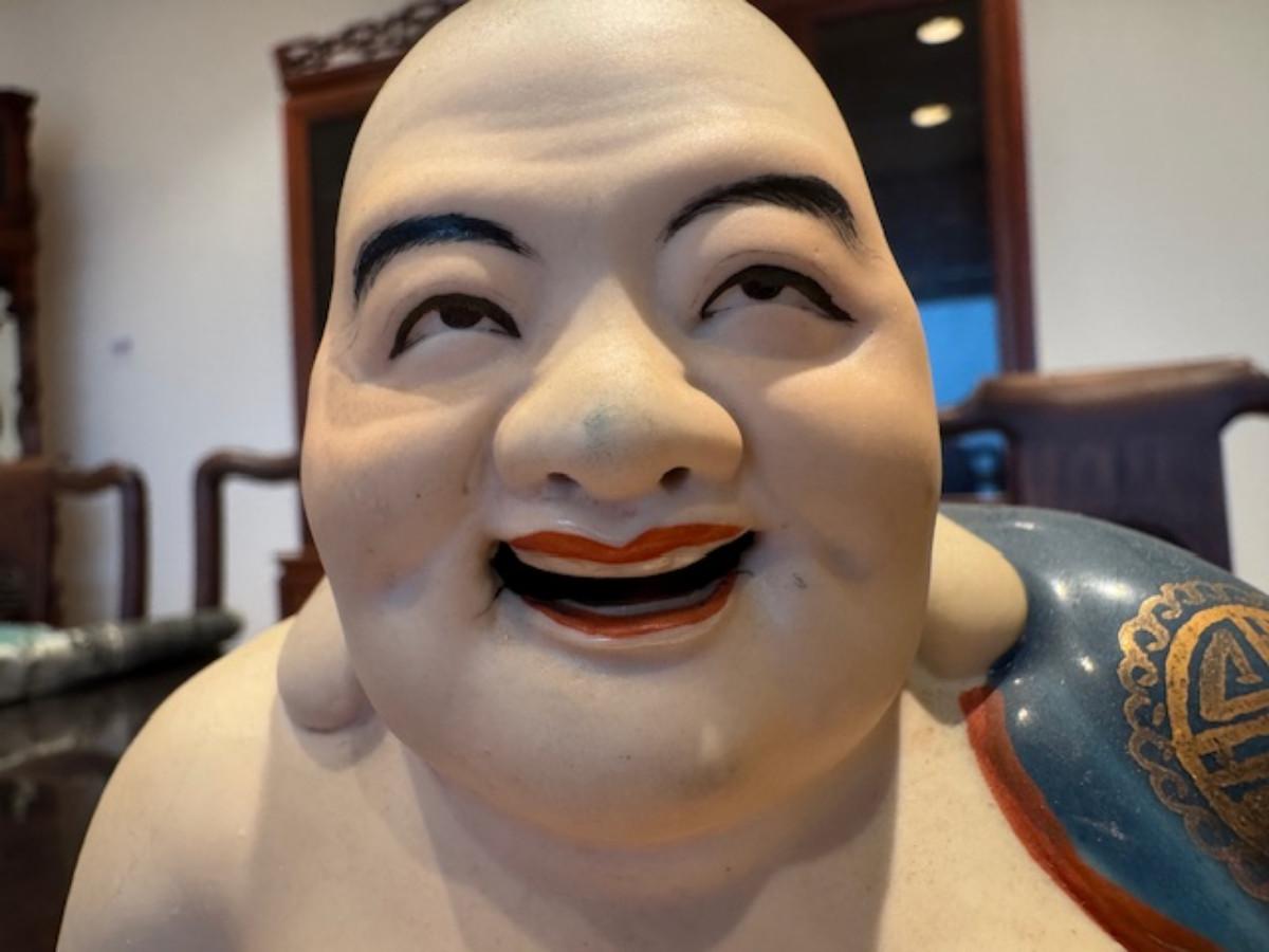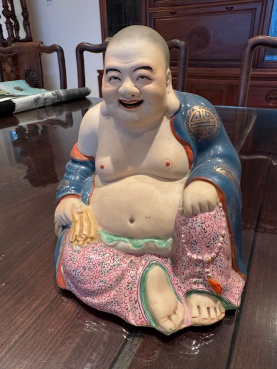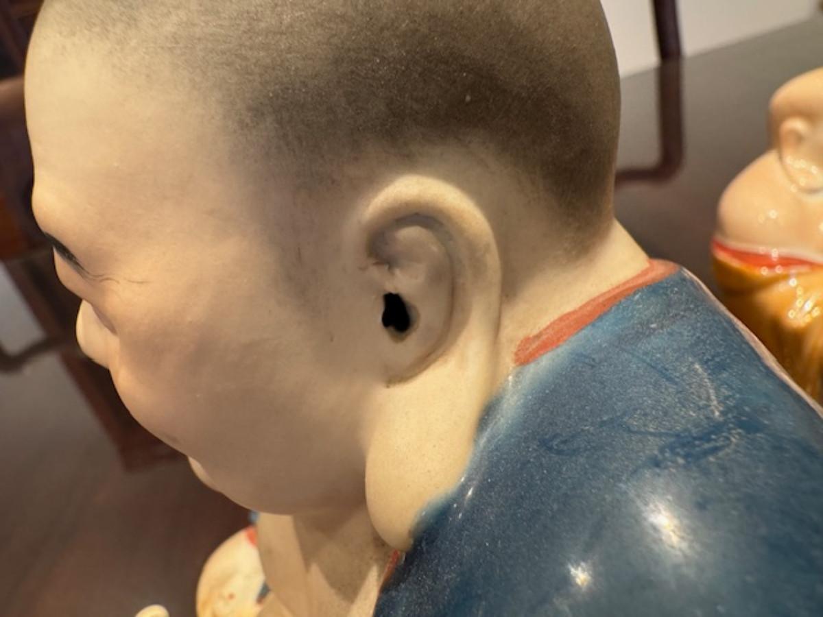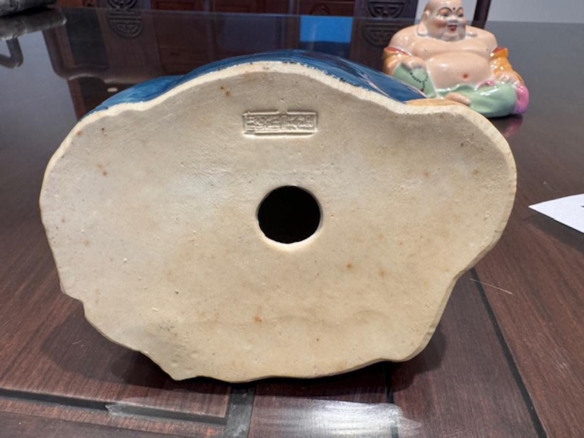 smaller Buddha has some of the glaze pealing off in a spot on the back about 1" long