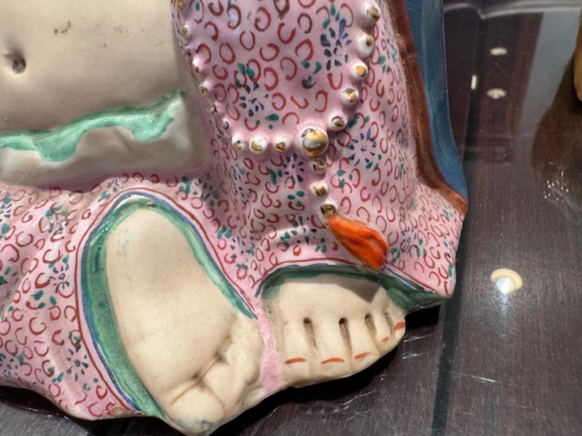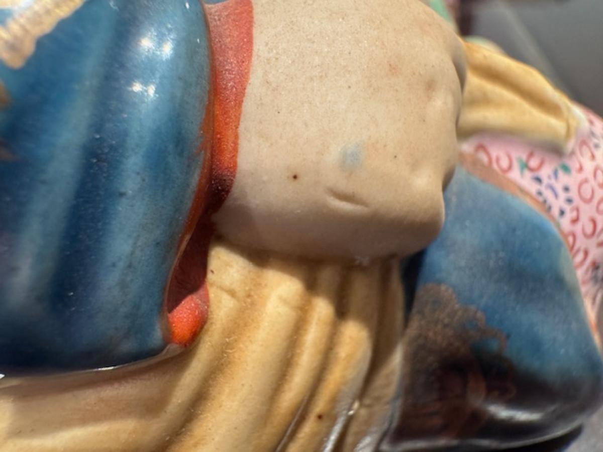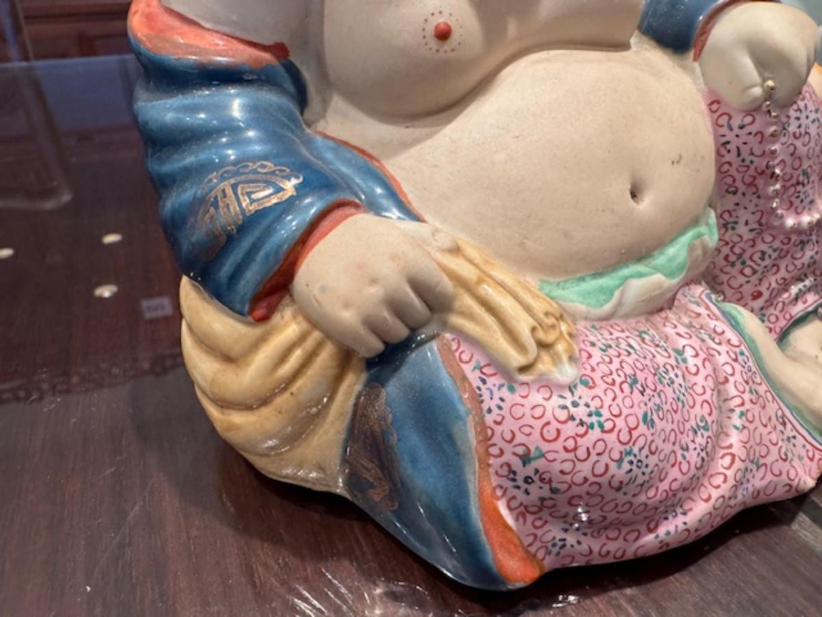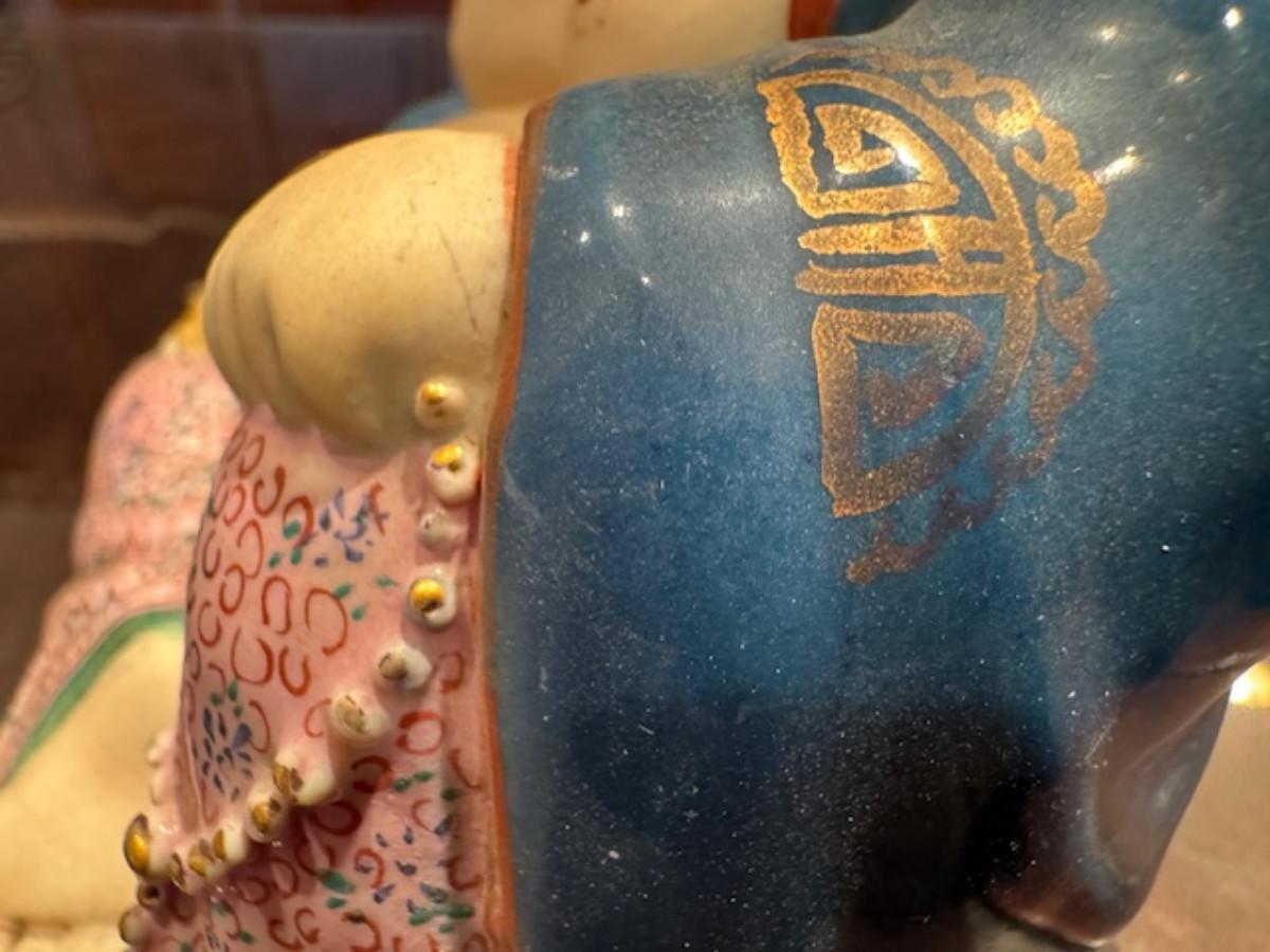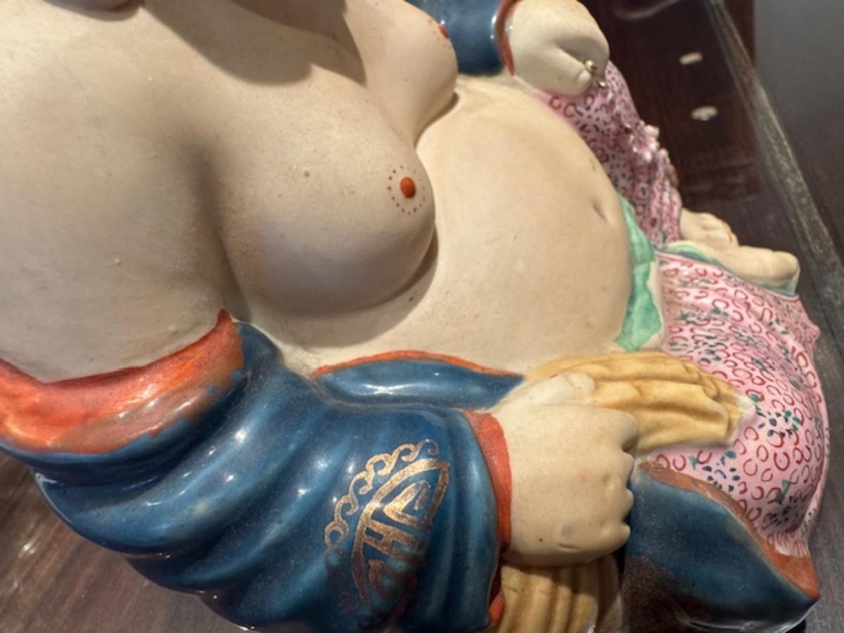 smaller Buddha has some of the glaze pealing off in a spot on the back about 1" long