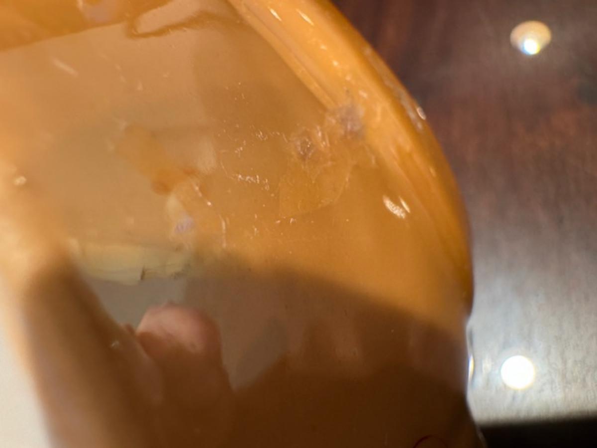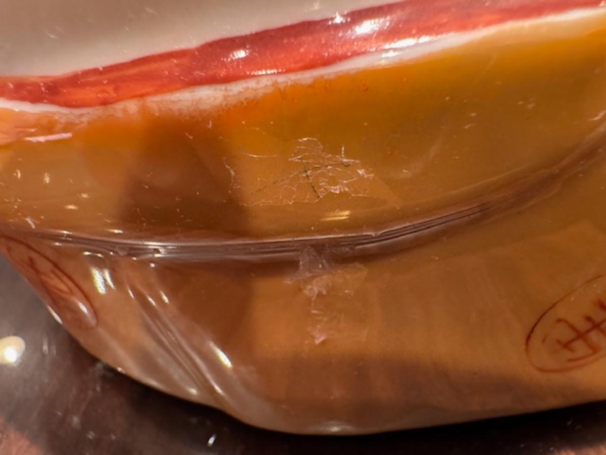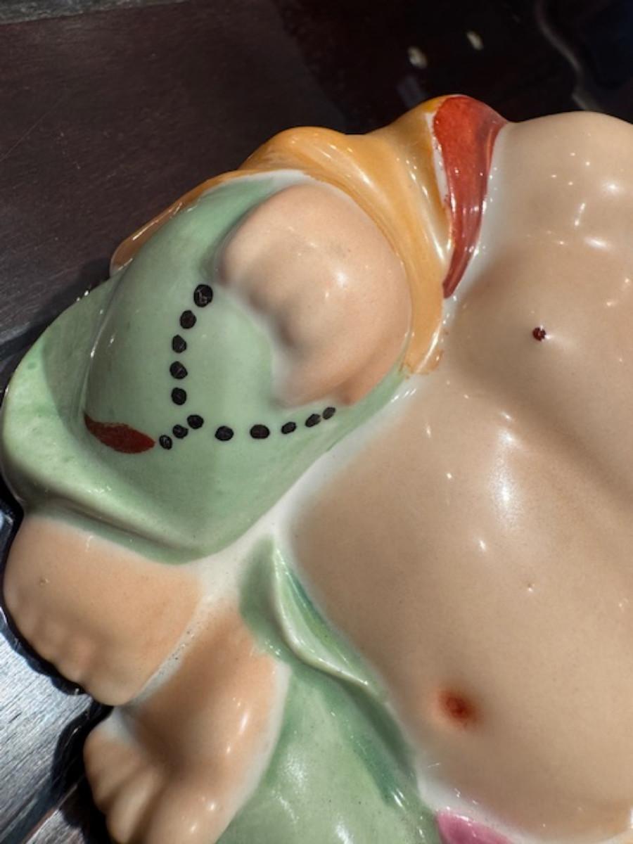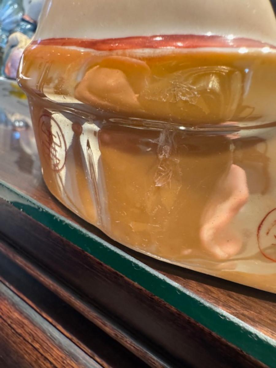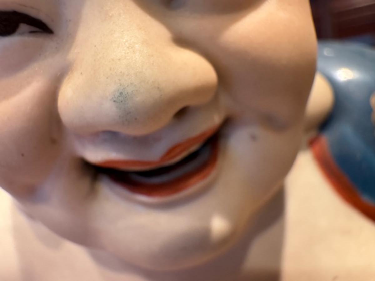 smaller Buddha has some of the glaze pealing off in a spot on the back about 1" long