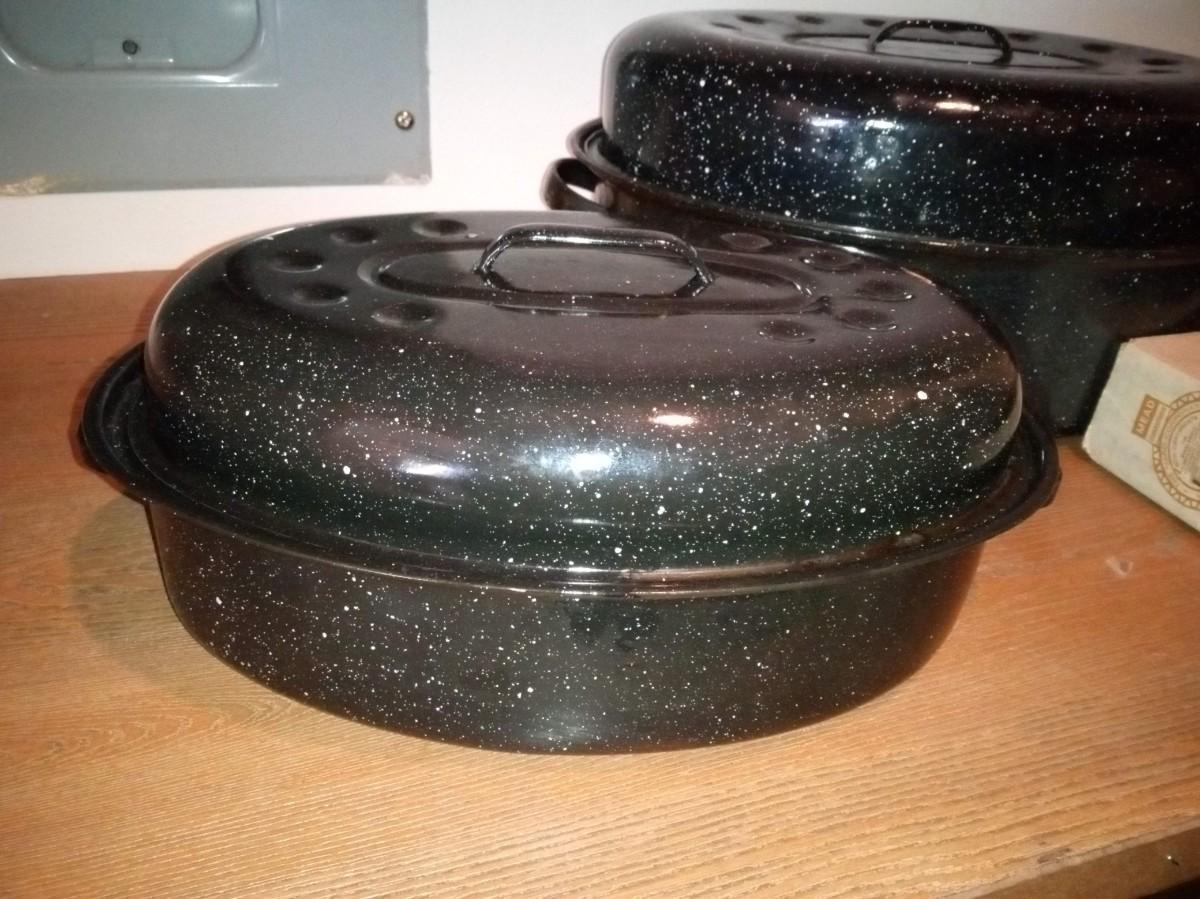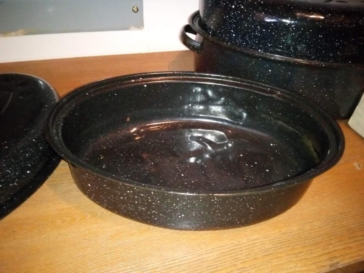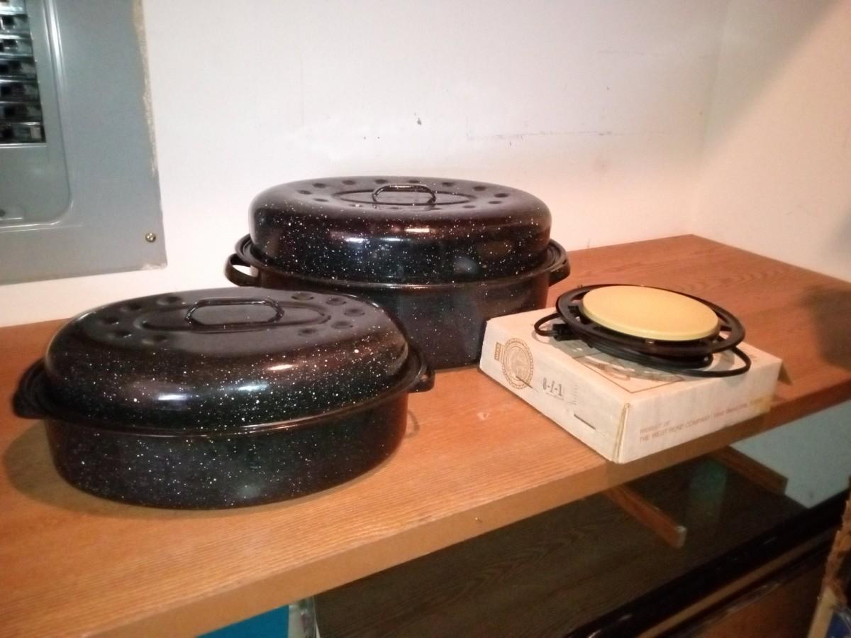 2 SIZES OF ROASTING PANS AND A HOT PLATE
