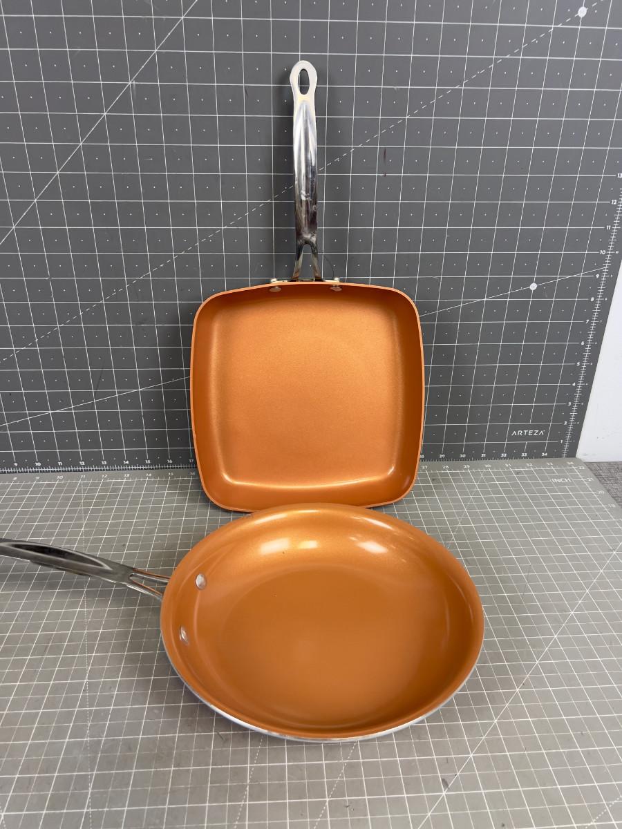 (2) Skillets Round and Square Red / Copper