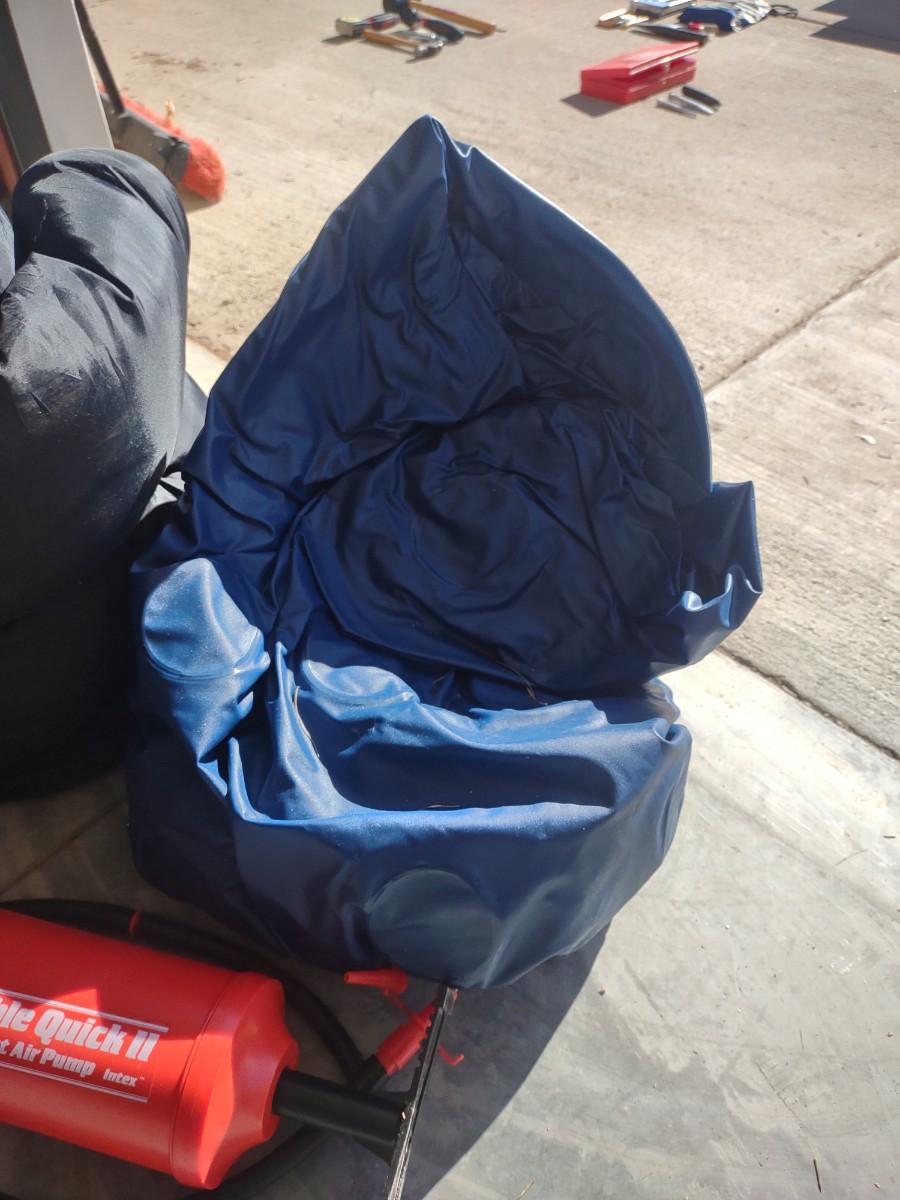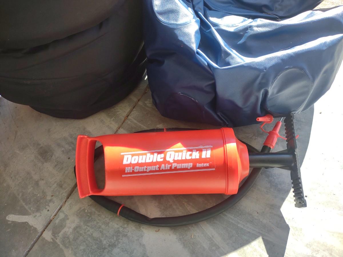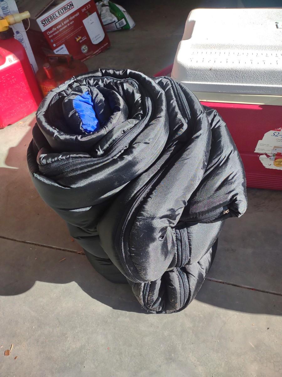 2 SLEEPING BAGS, AIR PUMP AND A COOLER