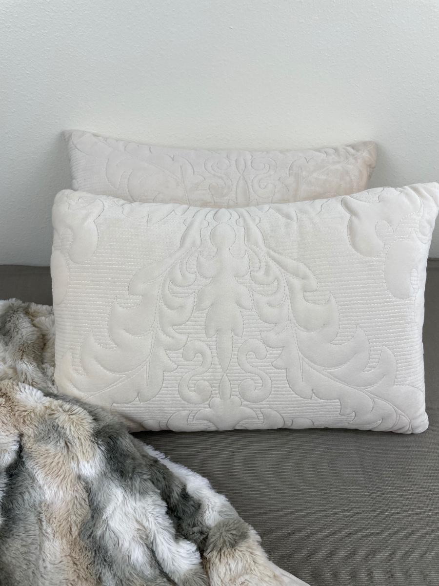Matches the minky blankets. 12” by 18” size with removable zipper covers. Poly filled.