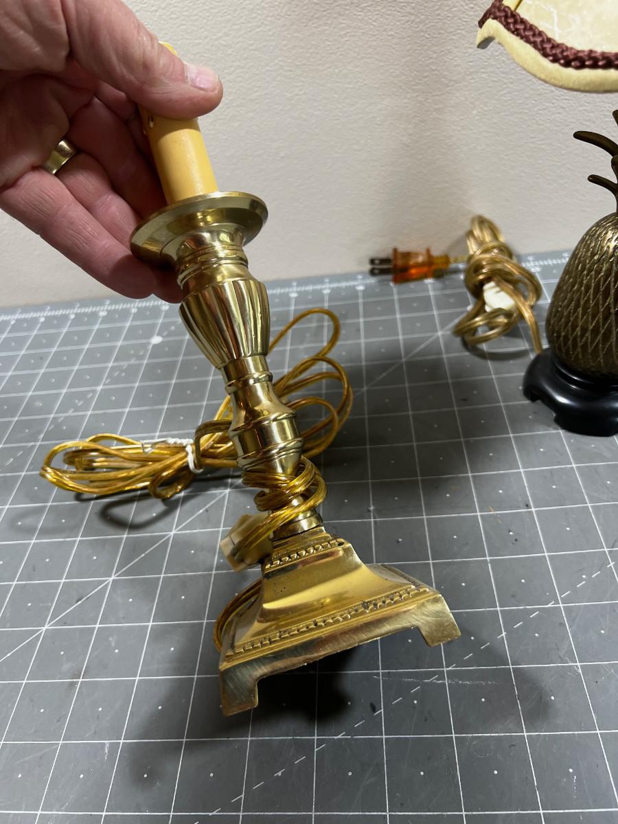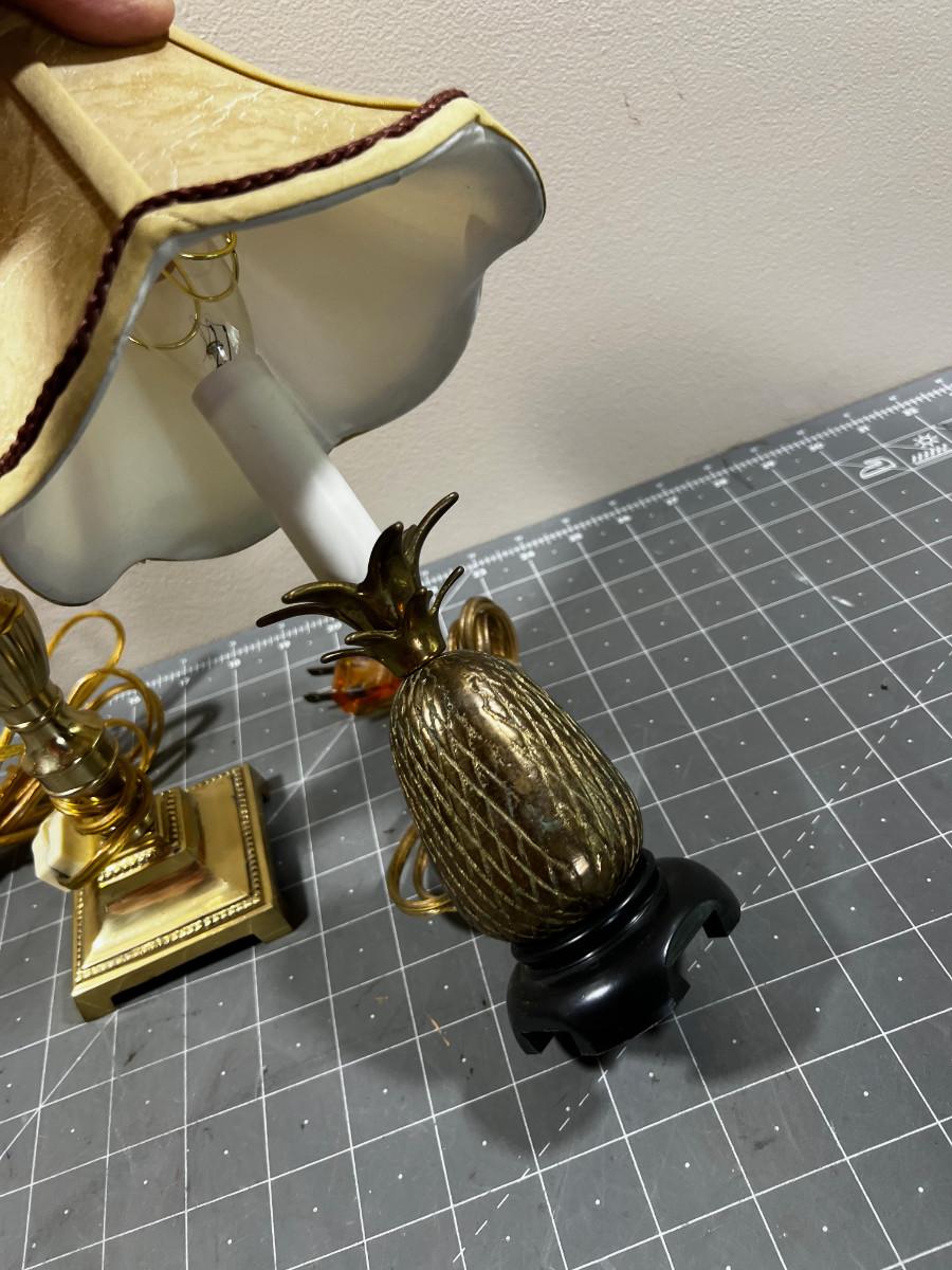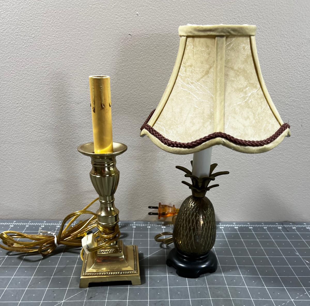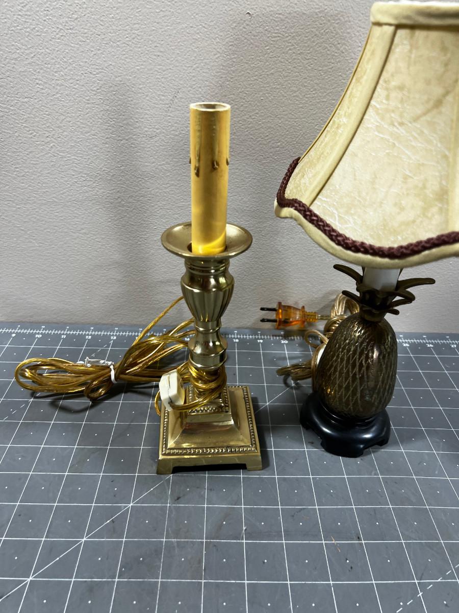 2 Small Brass Lamps Pineapple and Candle Stick Looking