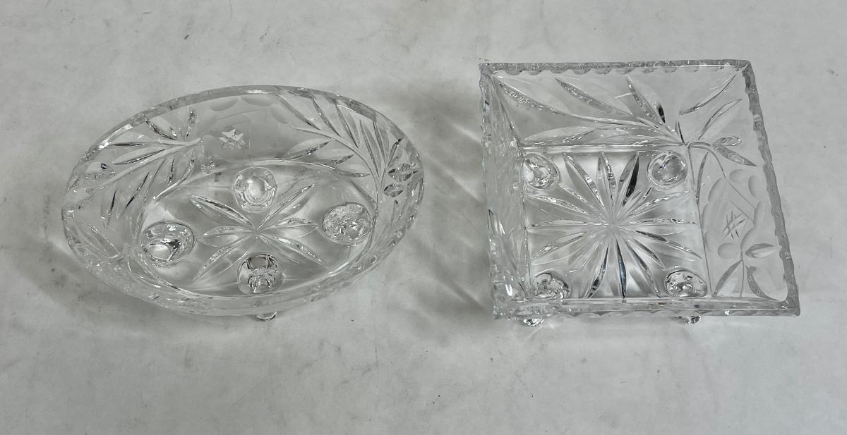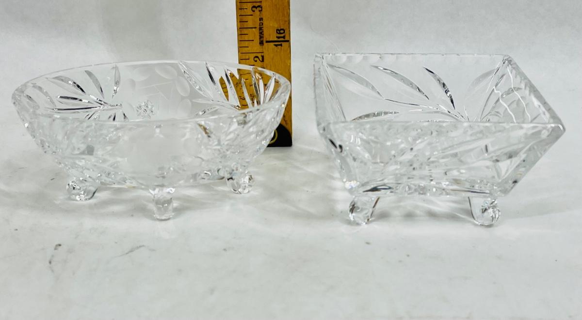 2 Small Crystal Footed Serving Dishes for Nuts / Candy