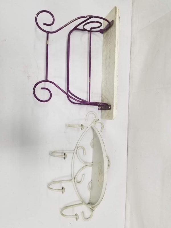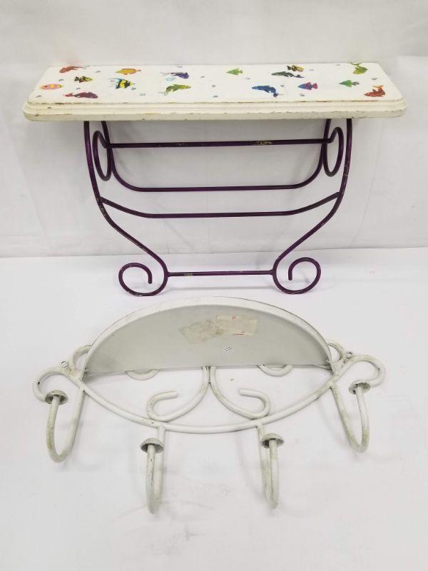 2 Small Knick-Knack Shelves - Metal White, Wood/Metal White/Purple