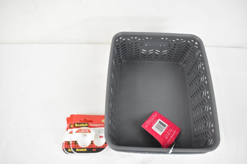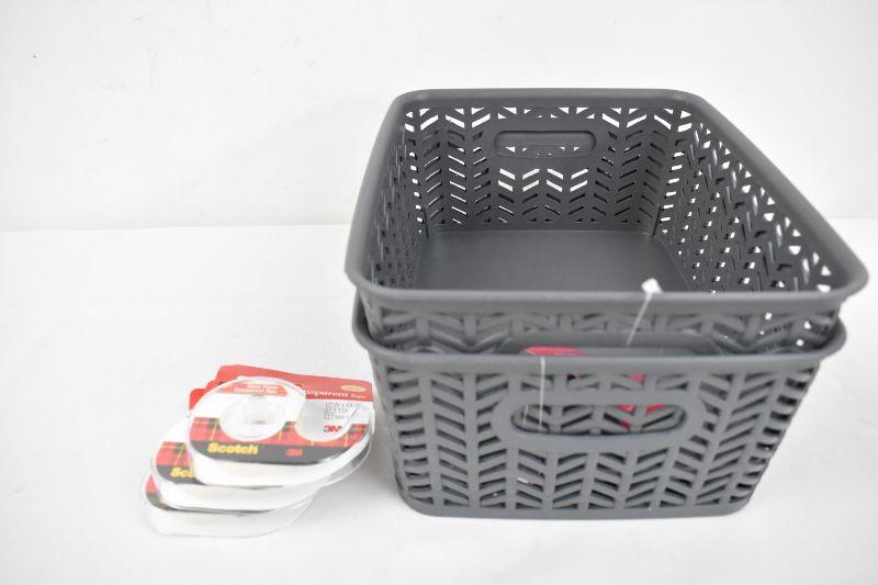 2 Small Storage Baskets, Gray & 3 Scotch Tape Packs - New