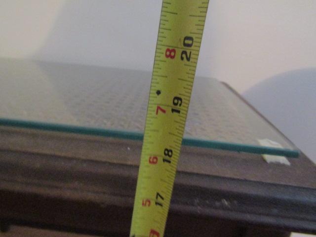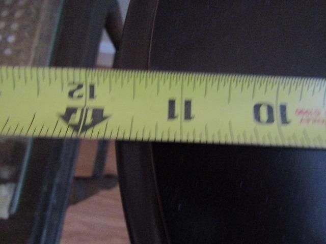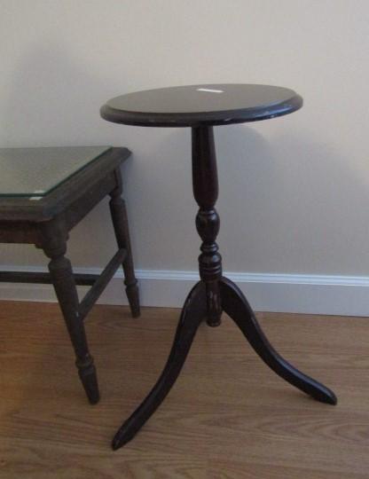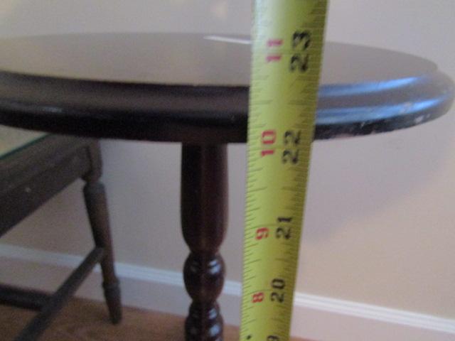 2 Small Wooden Tables:  Round- 11 3/4" in Diameter x 22 1/2" High.  Rectangular- 22" x 15" x 18 1/2"