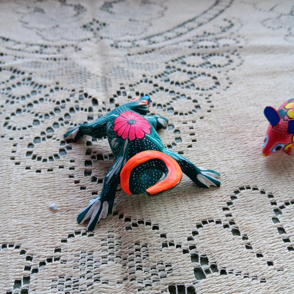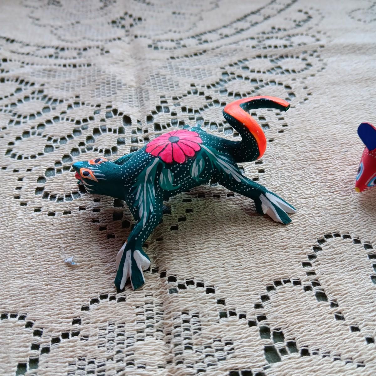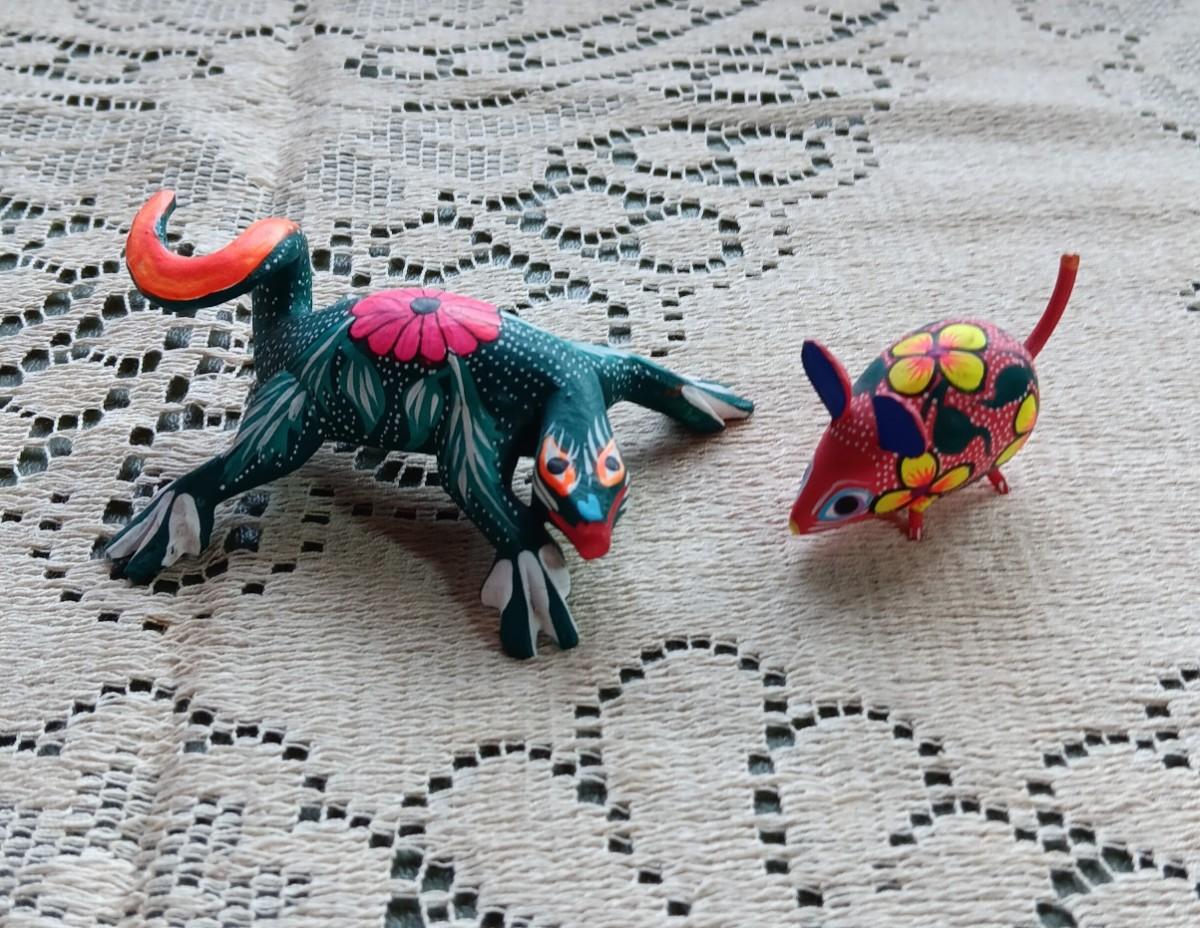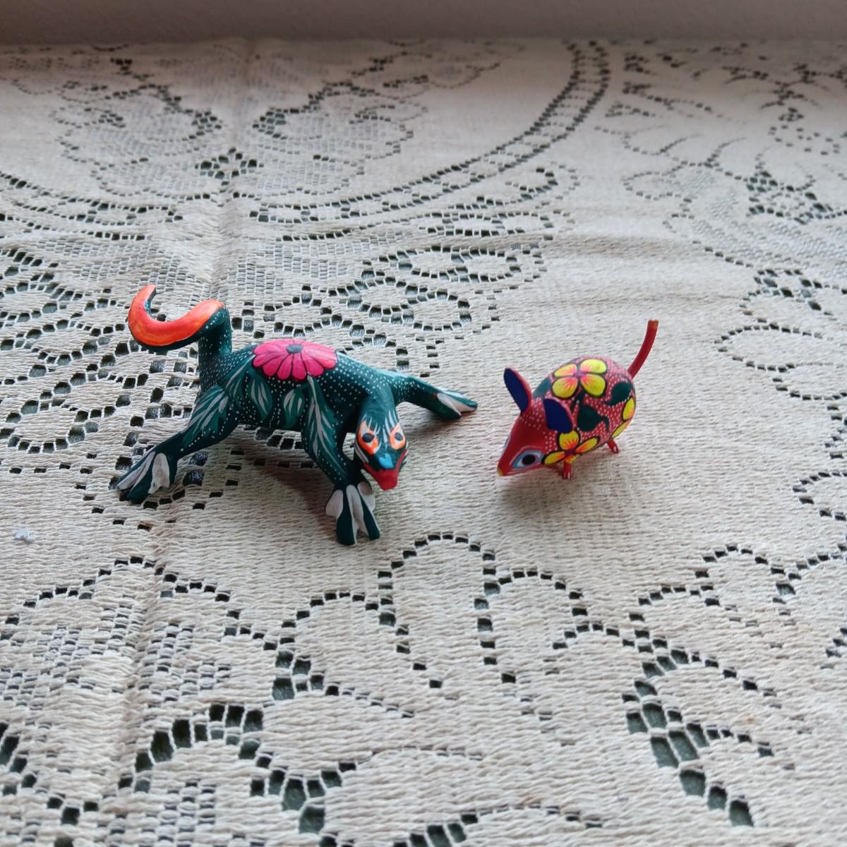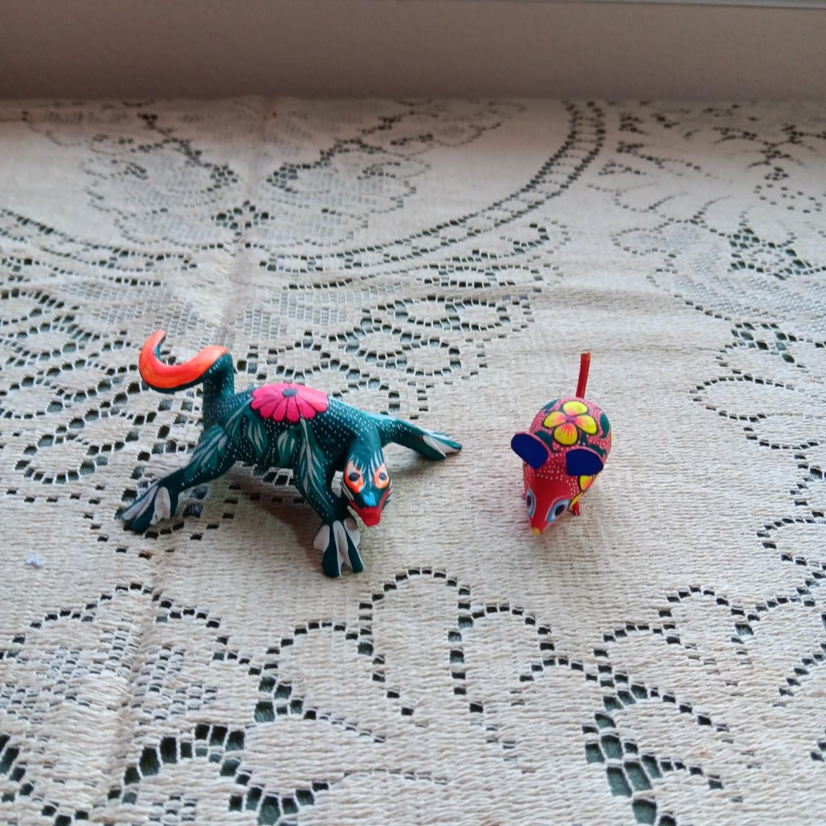 2 SMALLER ALEBRIJE HAND CRAFTED AND SIGNED OAXACAN LIZARD AND MOUSE