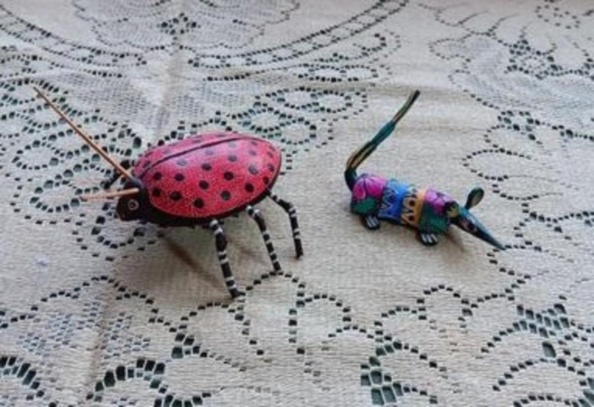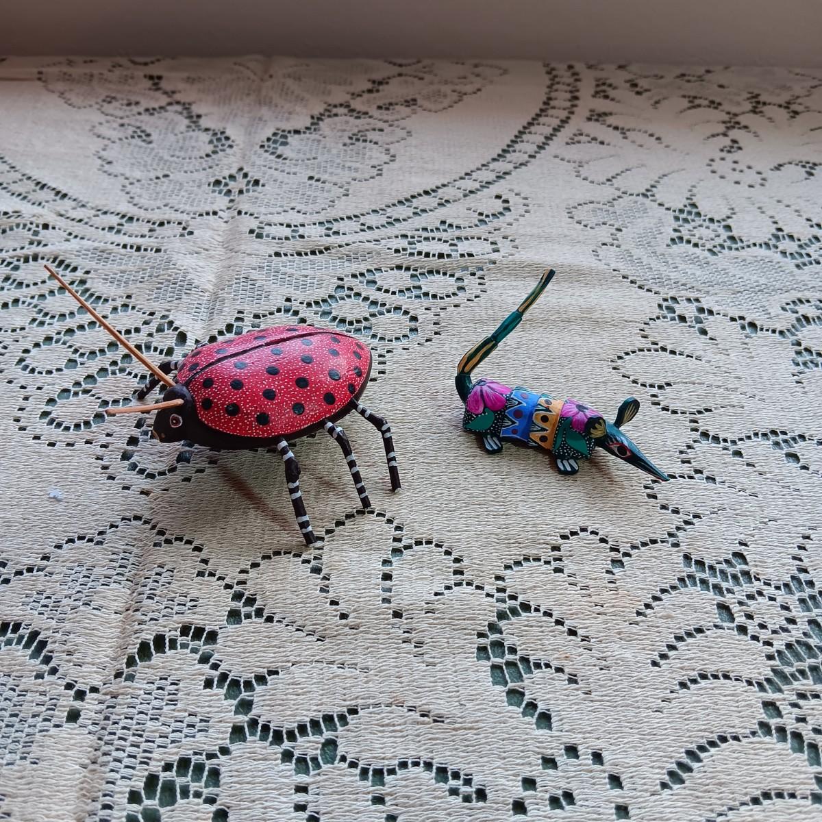 2 SMALLER ALEBRIJE OAXACAN HAND CARVED AND PAINTED SIGNED CREATURES