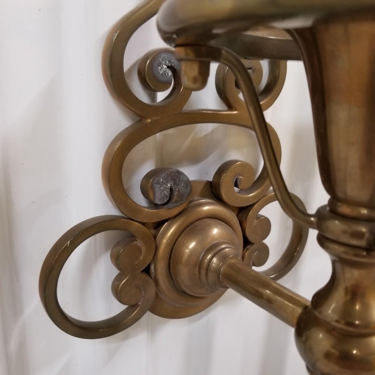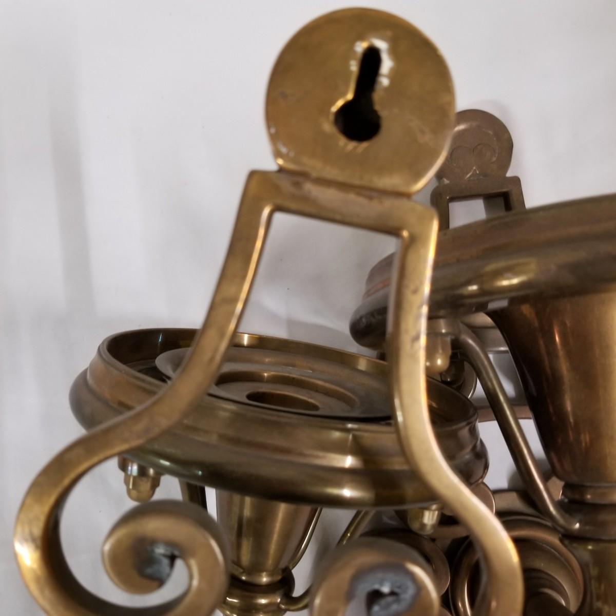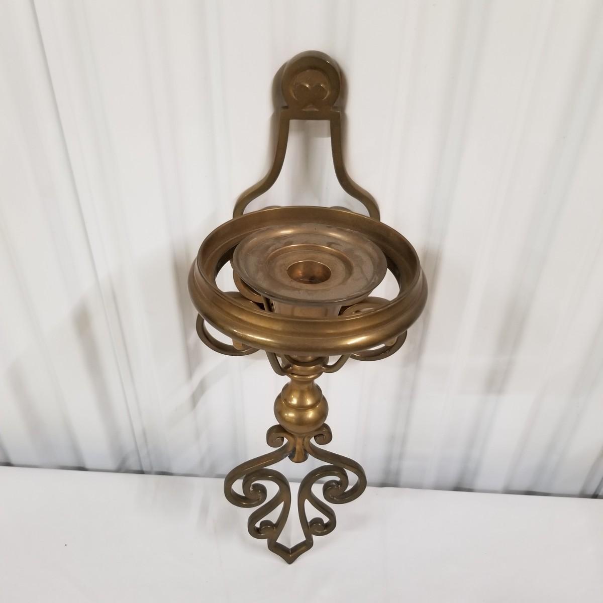 Two decorative solid brass wall sconces. Extended round holder with decorative pendant piece. Each sconce is 7"x17"x7", has hanging slot at top. Very heavy and solid. See photos for detail.  Shipping available.