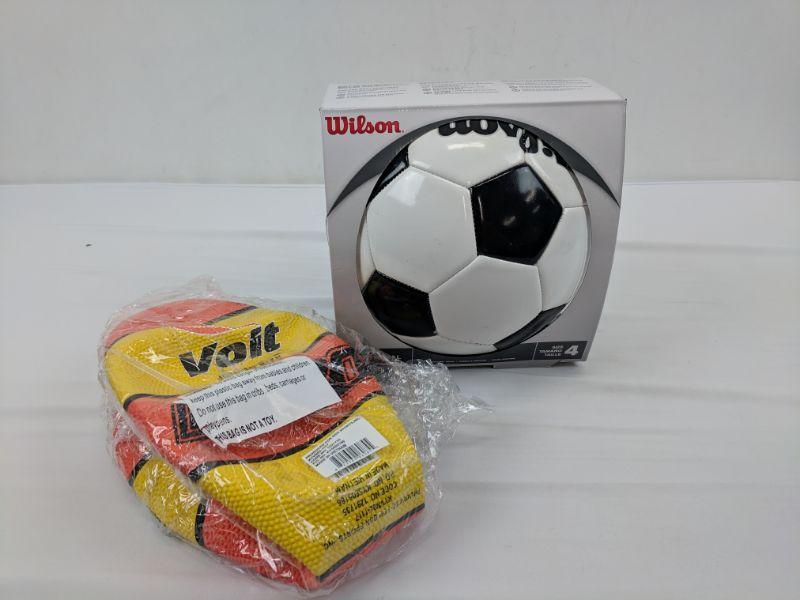 2 Sports Balls, Size 4 Wilson Soccer Ball & Volt Jr Size Basketball - New