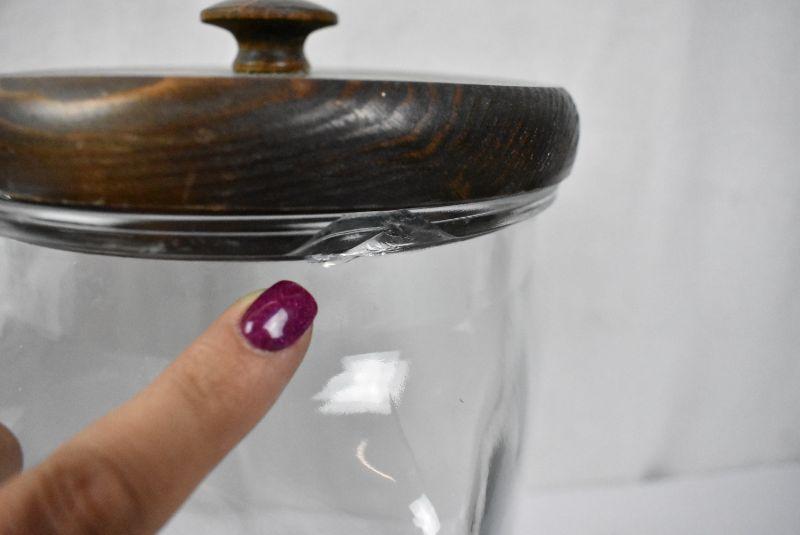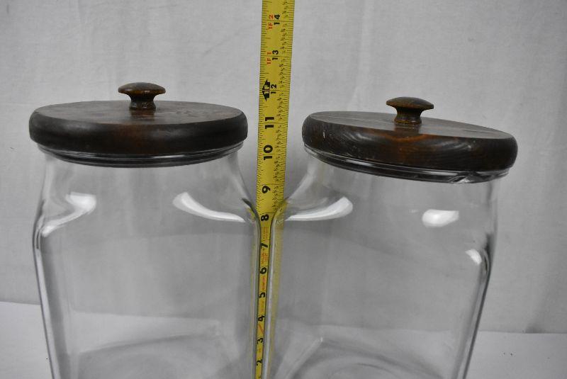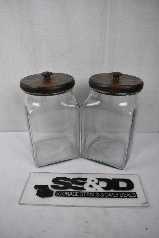 2 Square Glass Canisters with Dark Brown Wood Lids - Vintage?