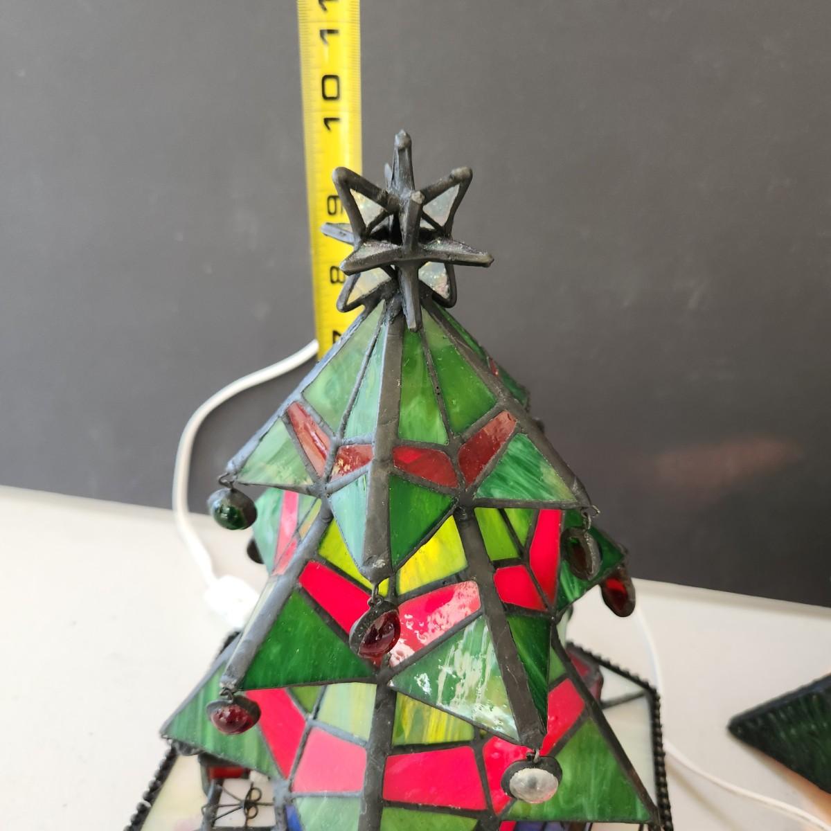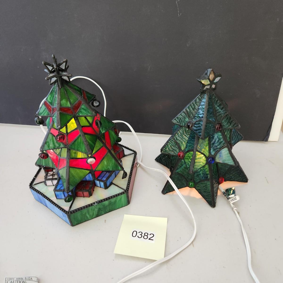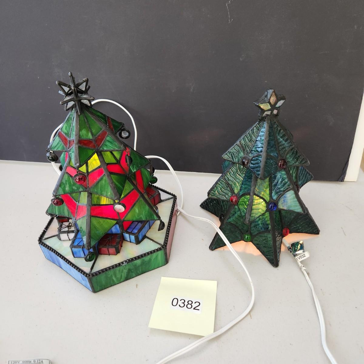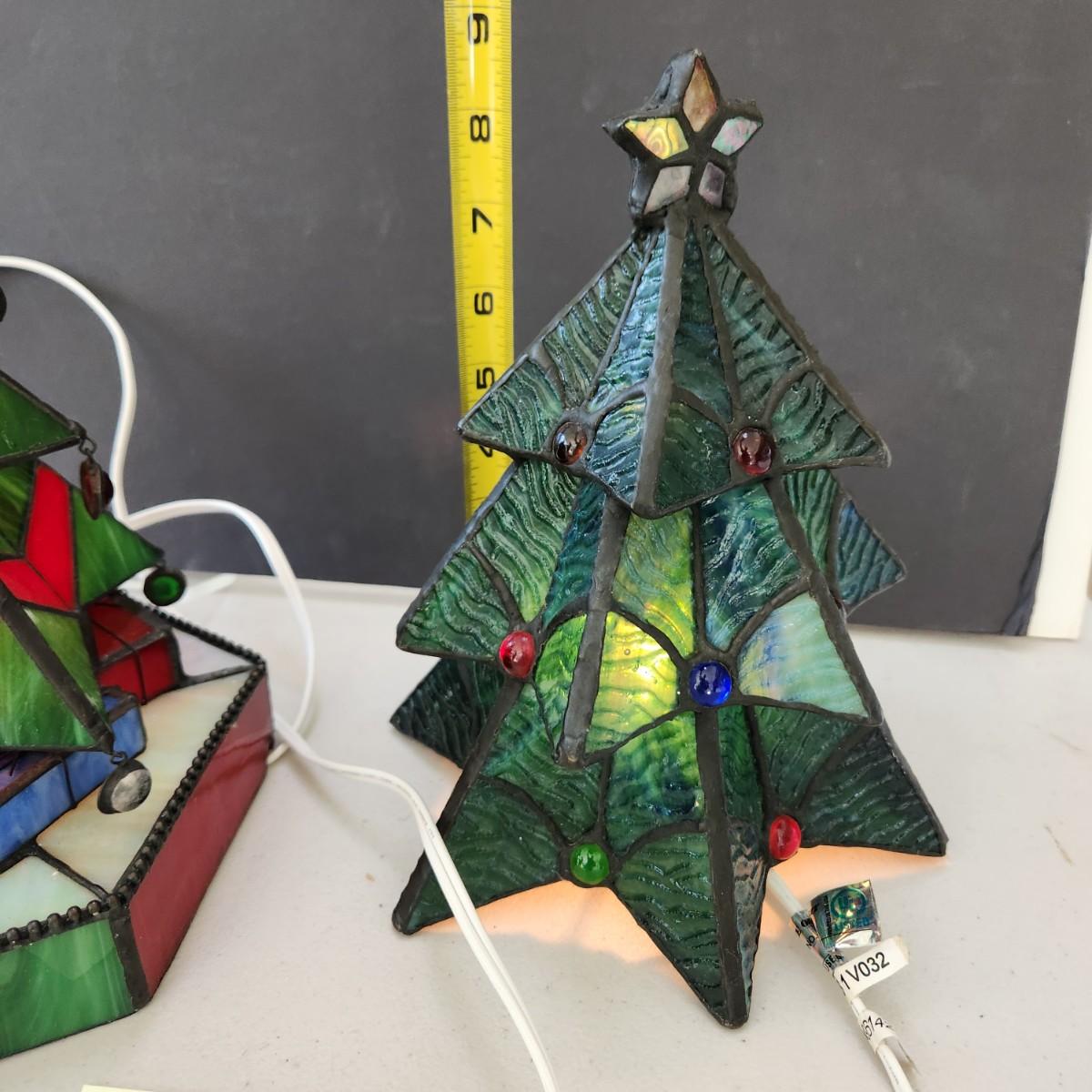 2 Stained Glass Christmas Tree Accent Lamps Lights