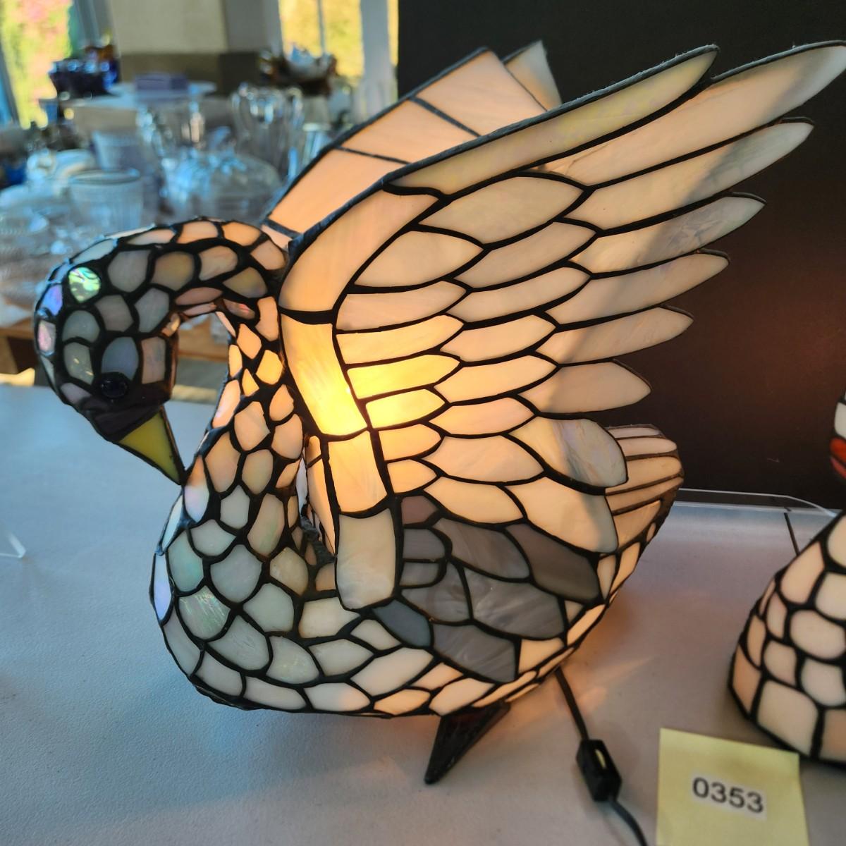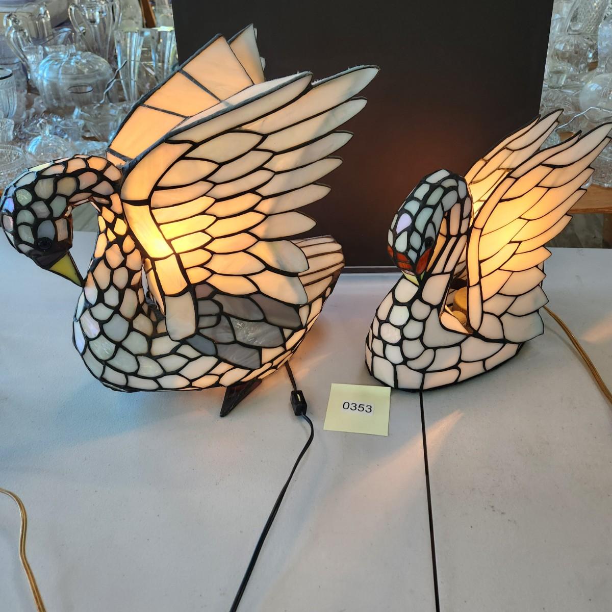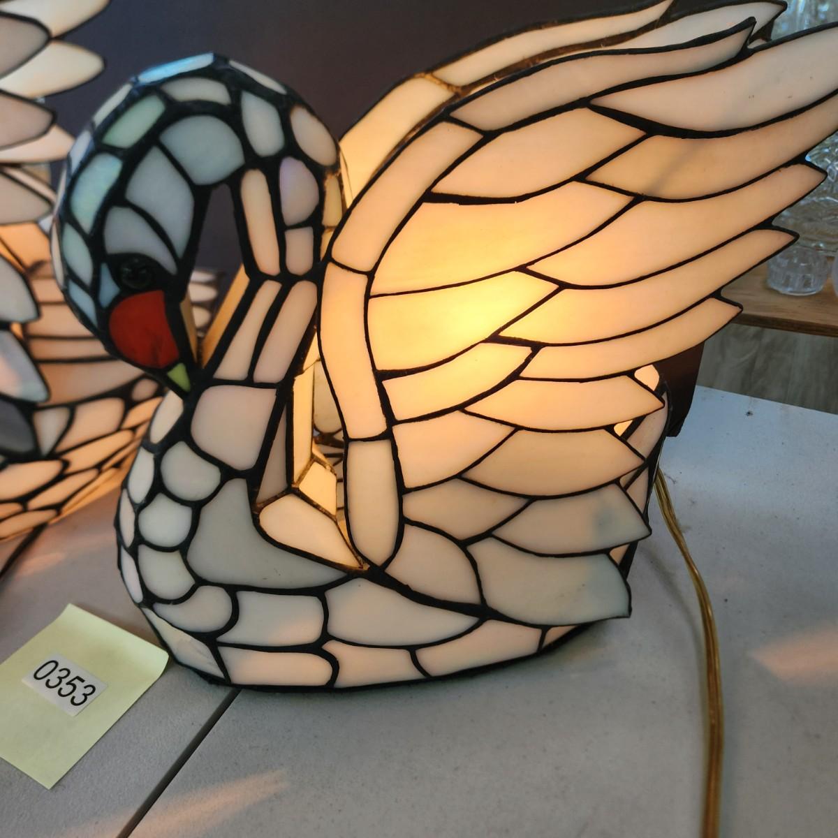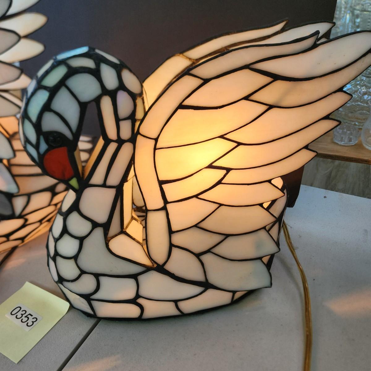2 Stained Glass Swan Table Lamps