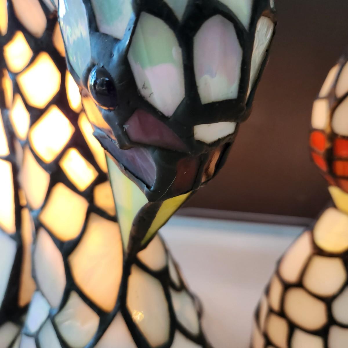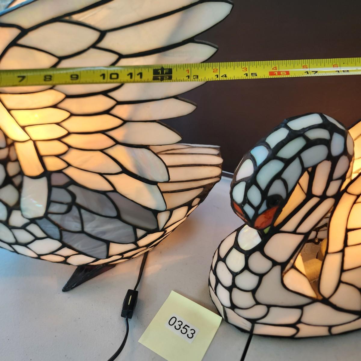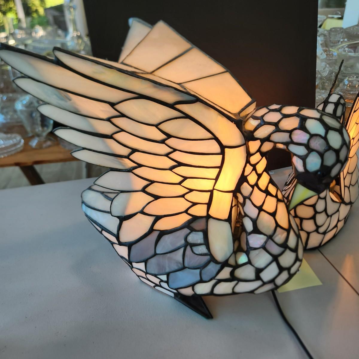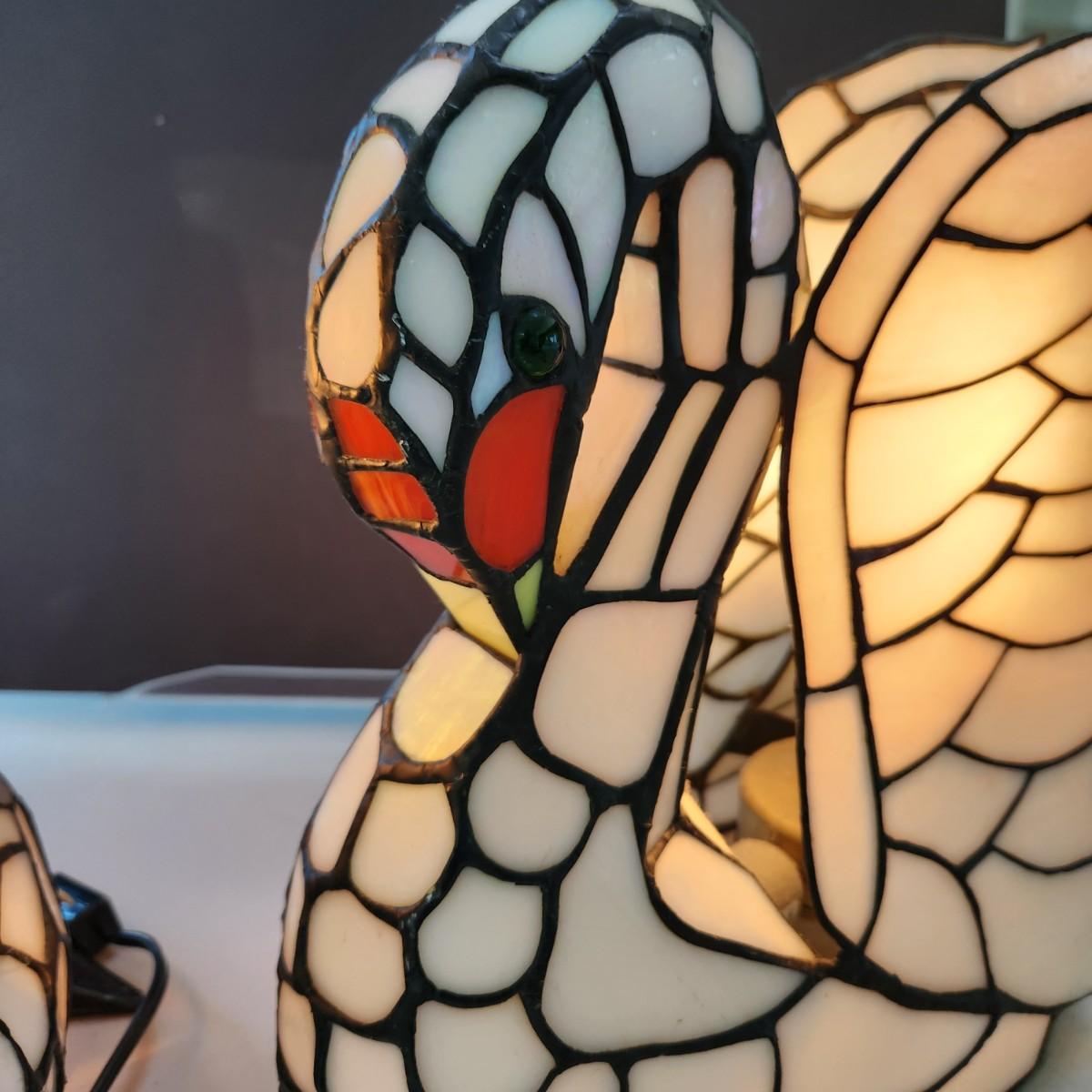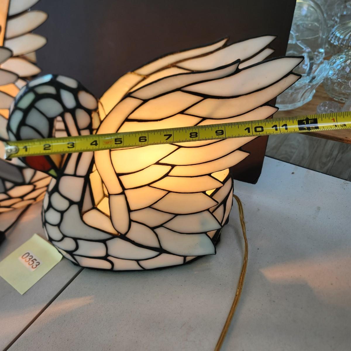 2 Stained Glass Swan Table Lamps