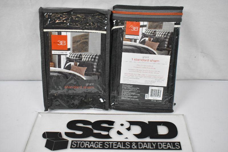 2 Standard Size Pillow Shams by Studio 3B, Black & Ivory "Grant" - New