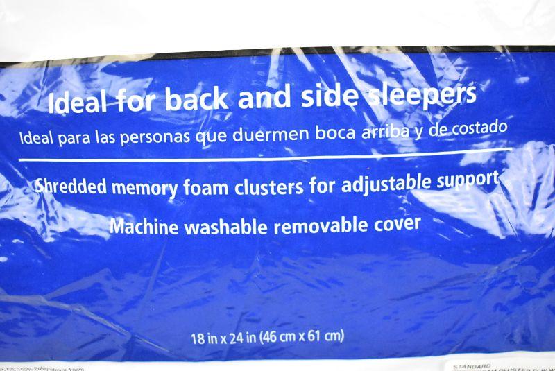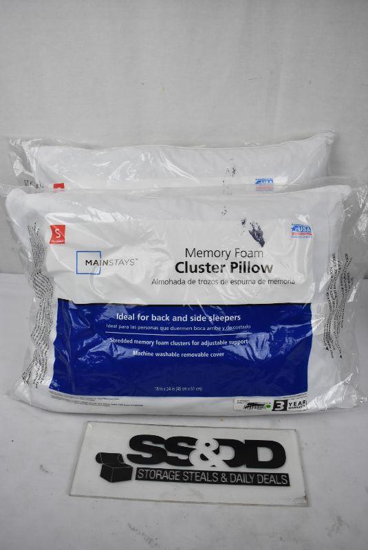 2 Standard/Queen Size Pillows, Mainstays Memory Foam Cluster Pillow with Removable Cover - New