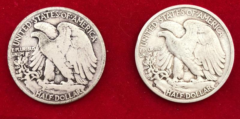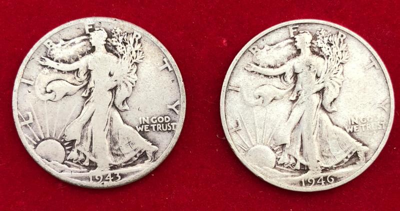 2 Standing Liberty Half Dollars US 90% Silver Coins 1943, 1946