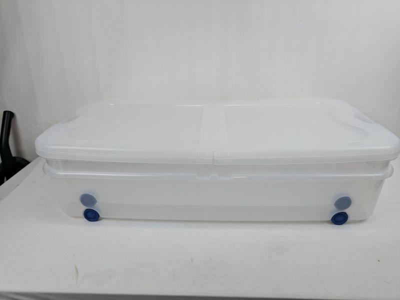2 Sterilite Wheeled Underbed Box, 1 Broken Wheel
