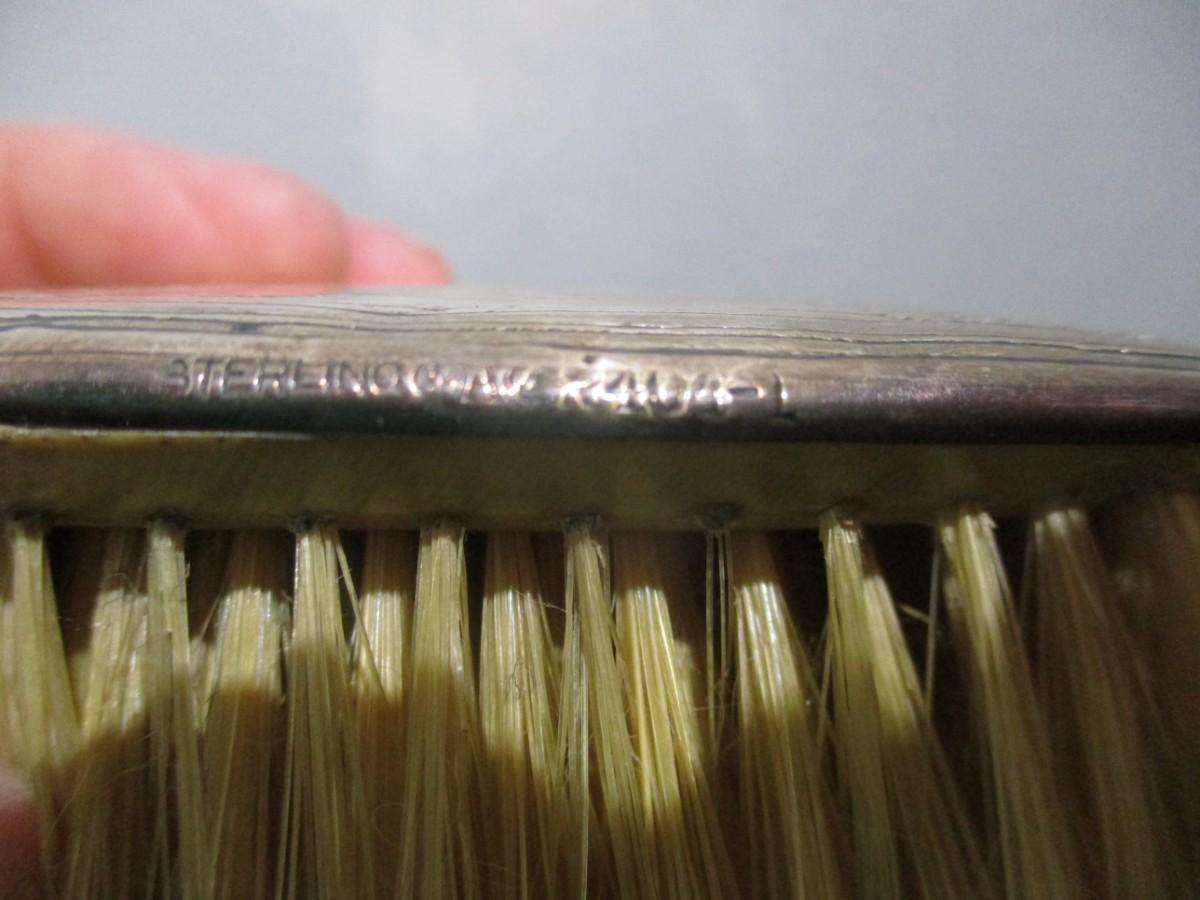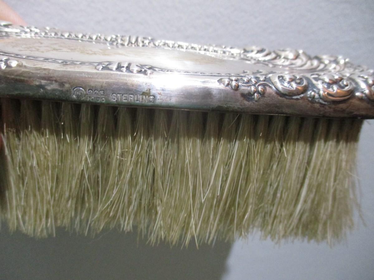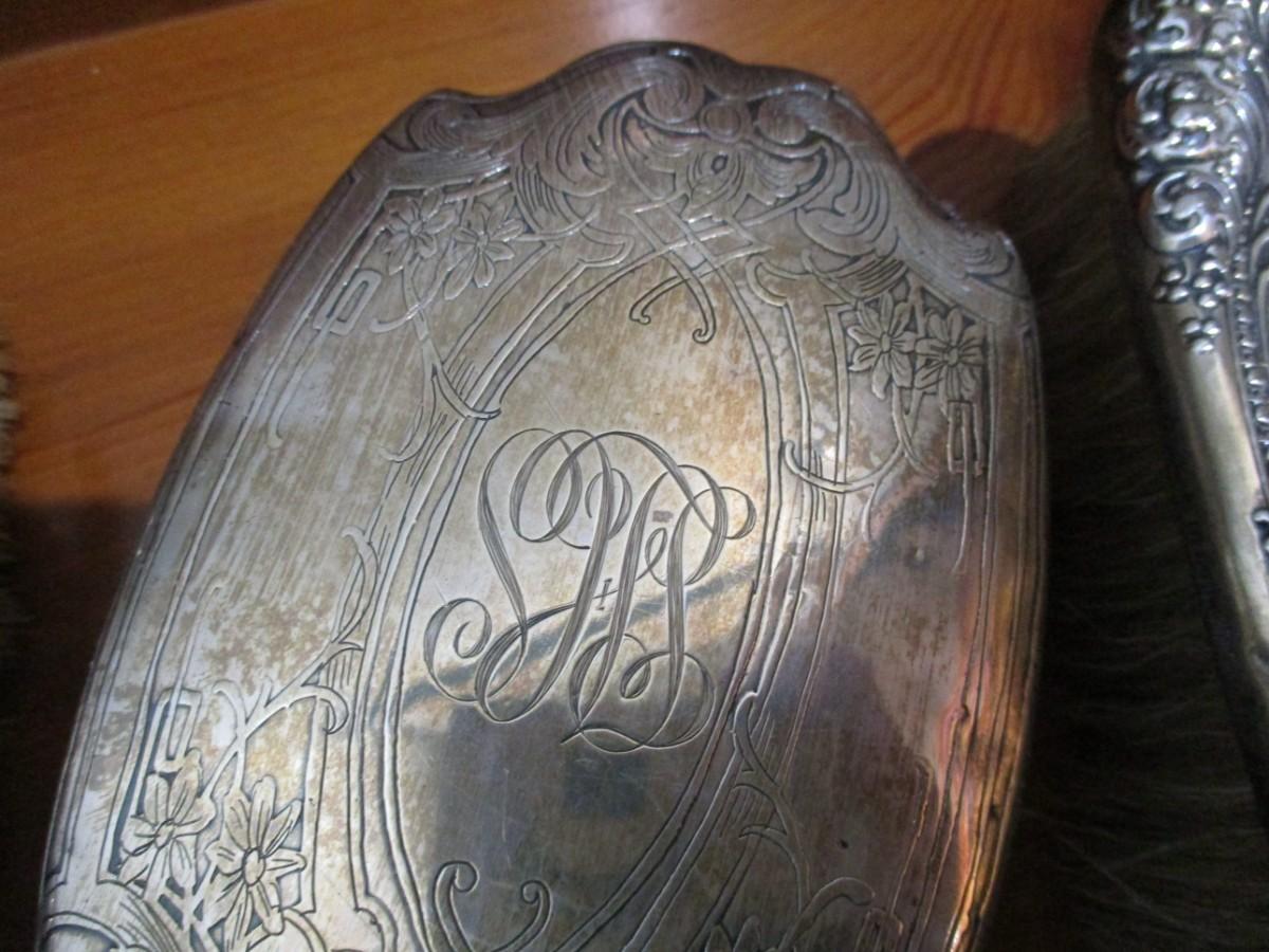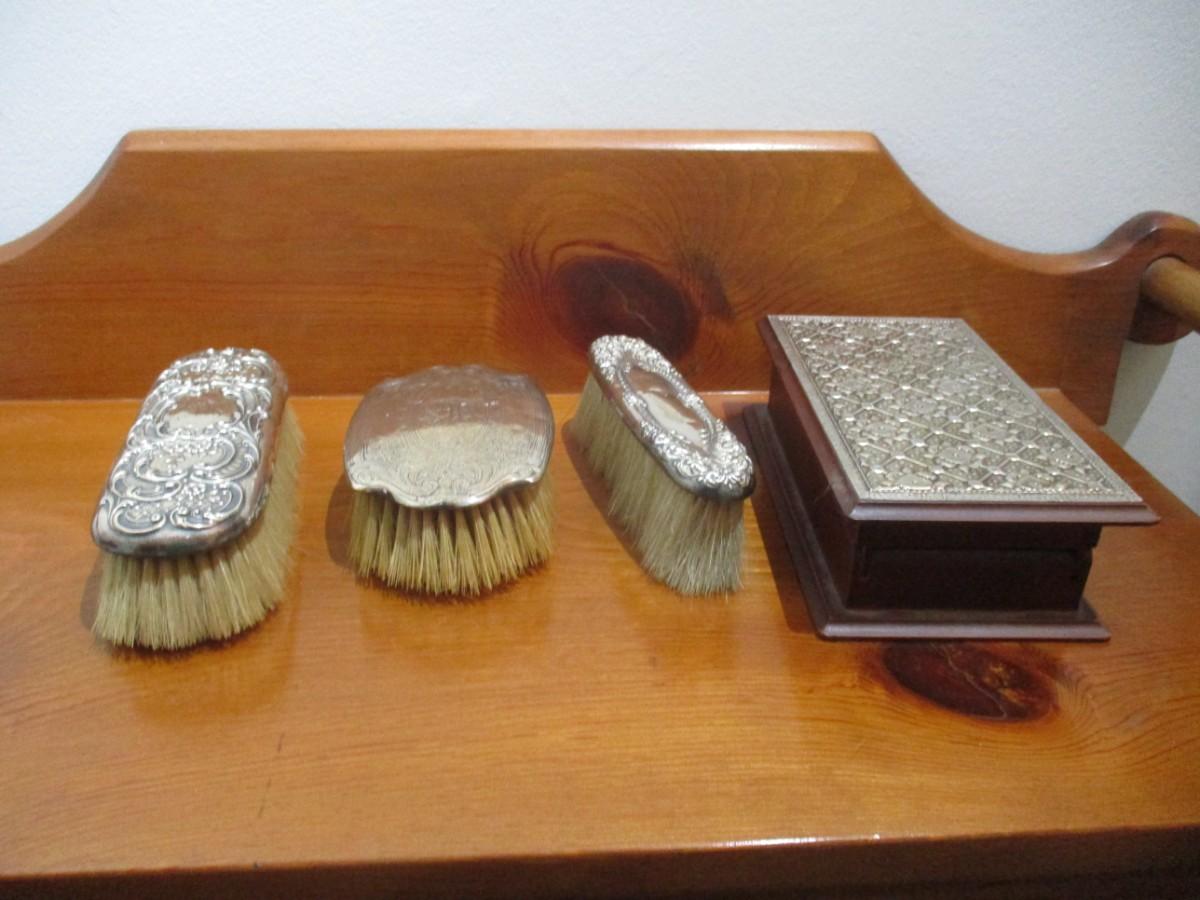 Vanity Top Accessories- 3 Brushes and One Storage Box- D. Two brushes are sterling silver.
