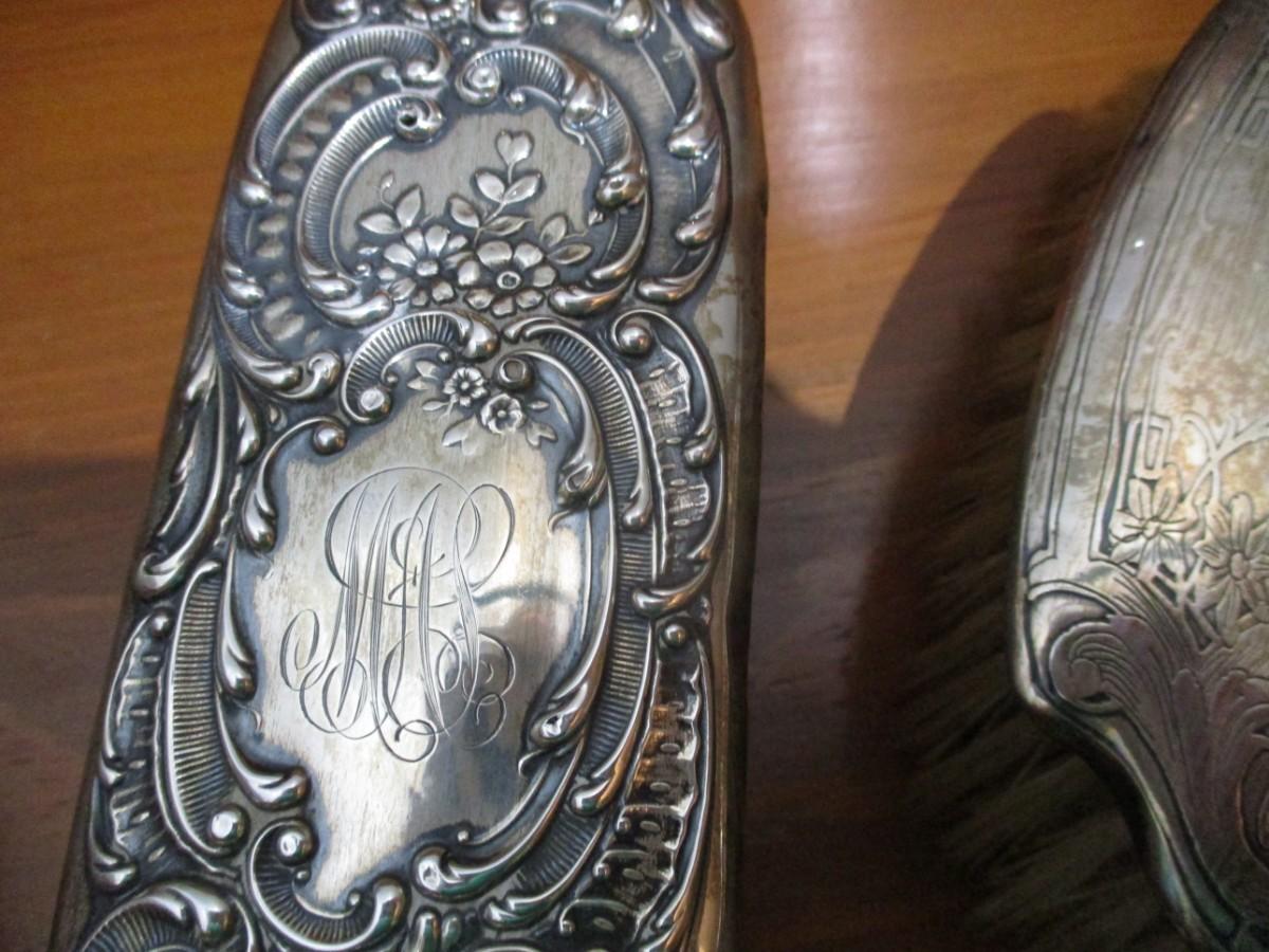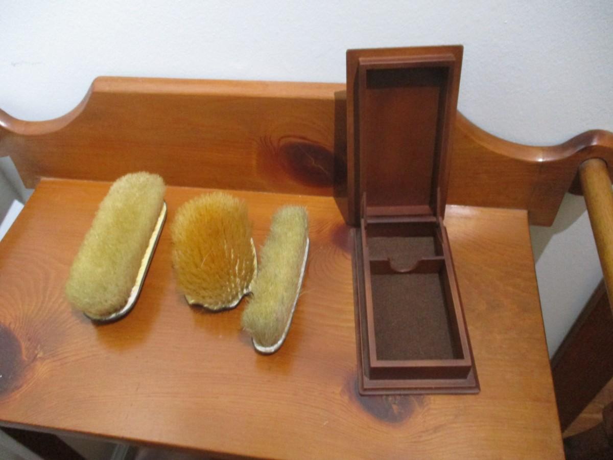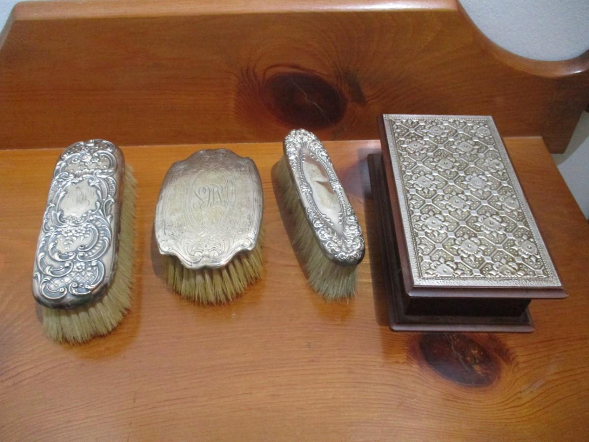 Vanity Top Accessories- 3 Brushes (Two are Sterling) and One Storage Box- D