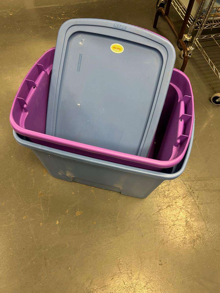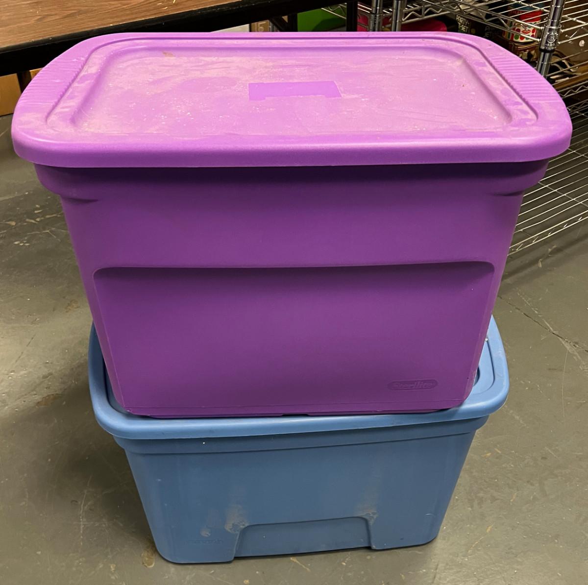 2 Sterlite Large Tubs with Lids, Blue and Purple