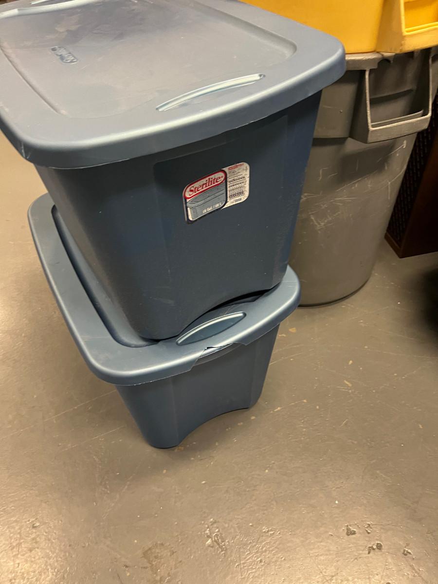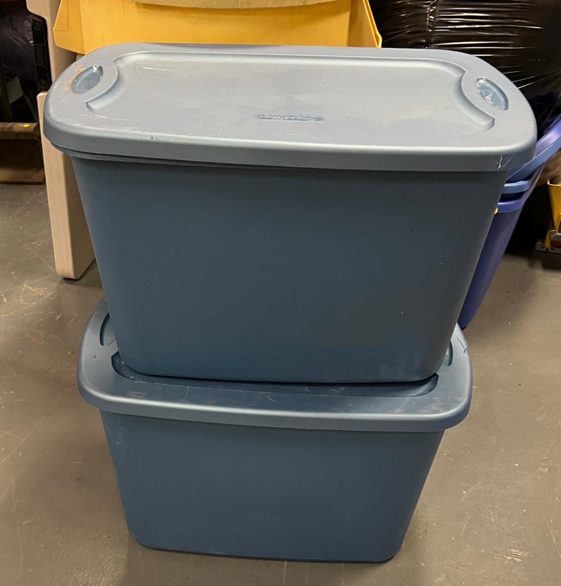 2 Sterlite Tub with Lid, Blue Cracked Lid