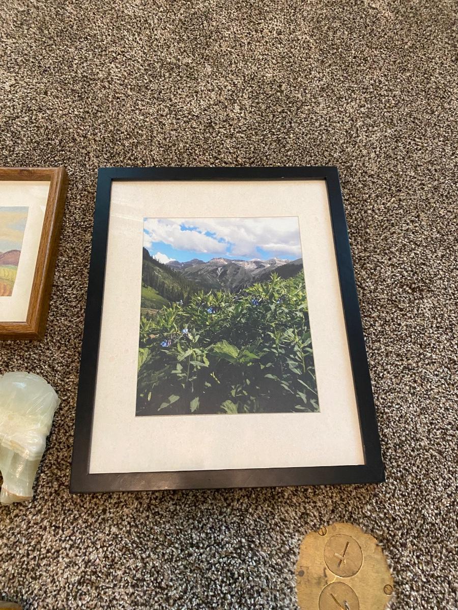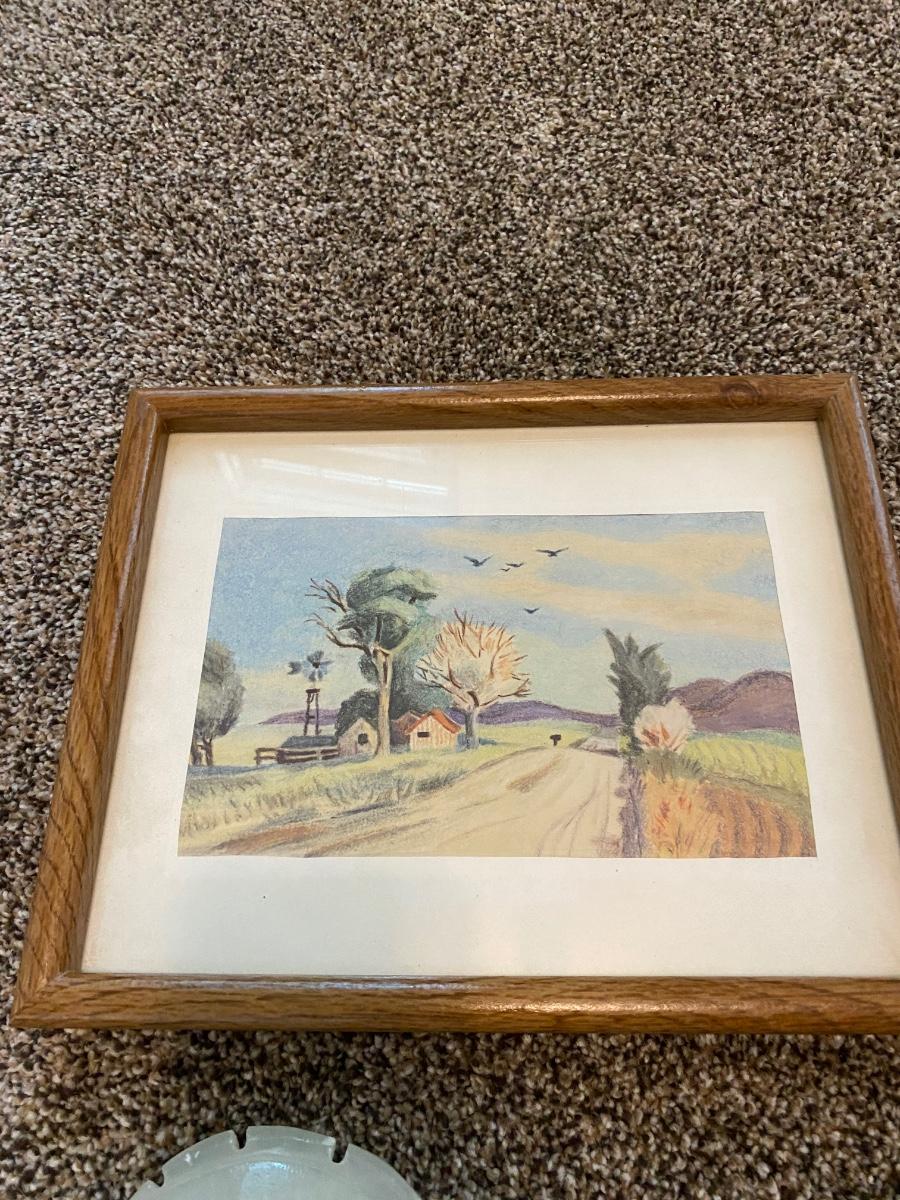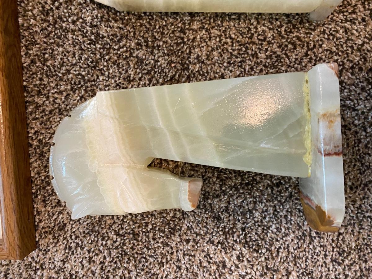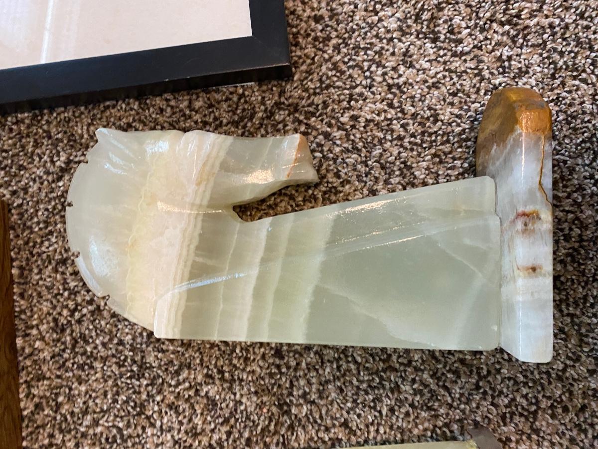 2 STONE HORSE HEAD BOOK ENDS AND FRAMED PICTURES