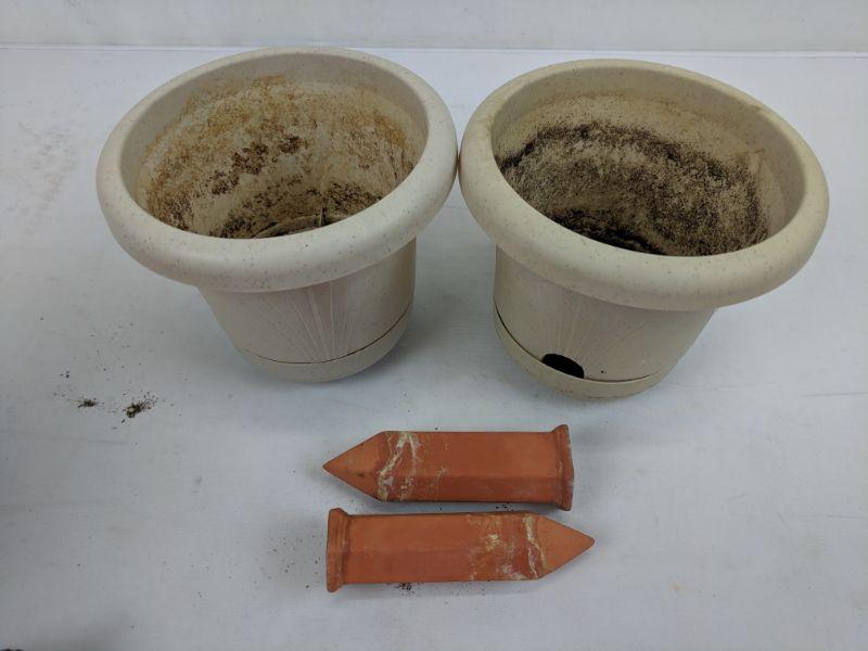 2 Stone Look Plastic Pots, 2 Aqua Stakes