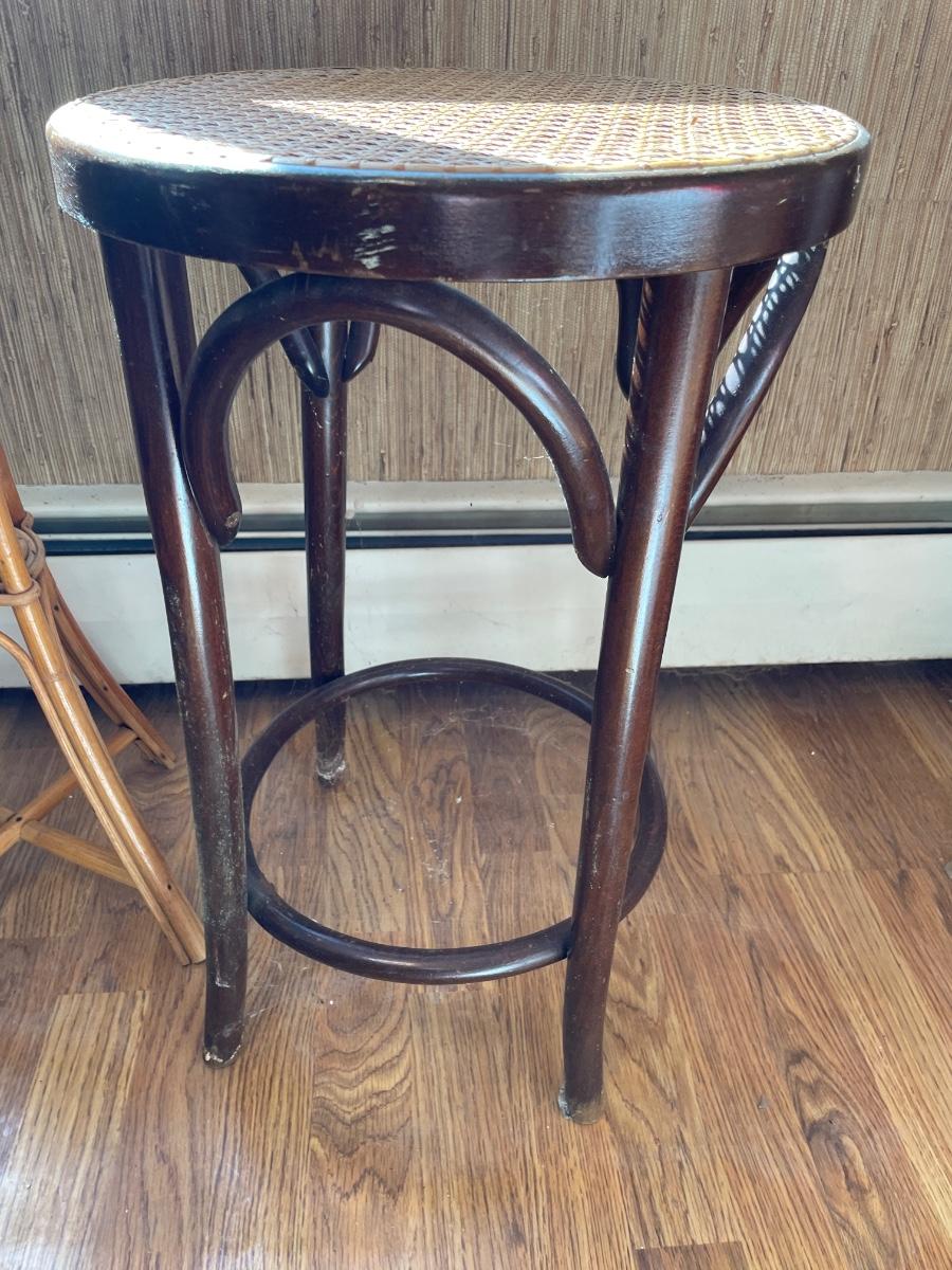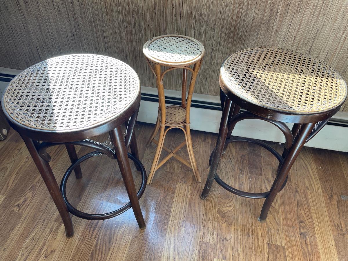 Stools with wicker top and plant stand