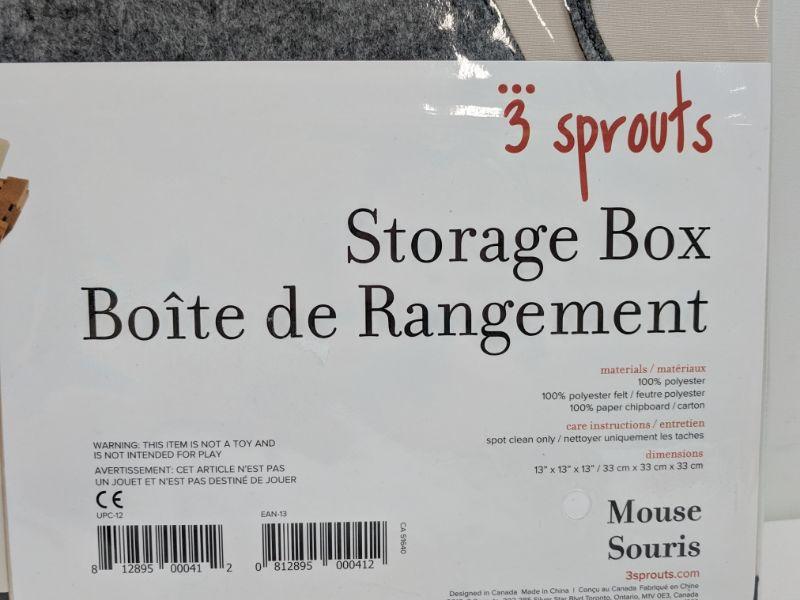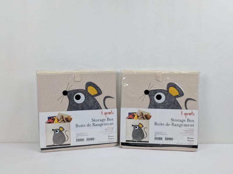 2 Storage Boxes, Mice Print, 3 Sprouts, 13x13x13, Qty 2 - New