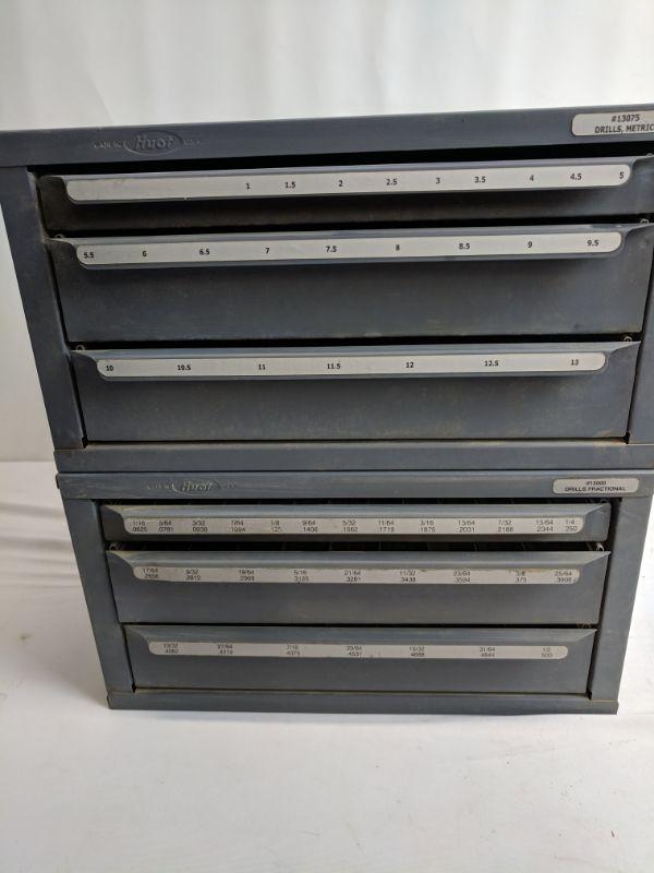 2 Storage Containers, #13000 Drill Fractional Storage & Misc Parts, #13075 Drills, Metrics Storages