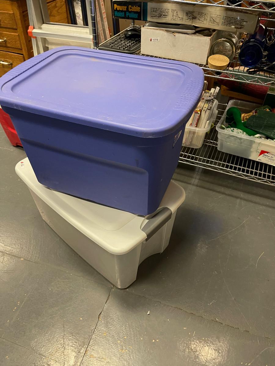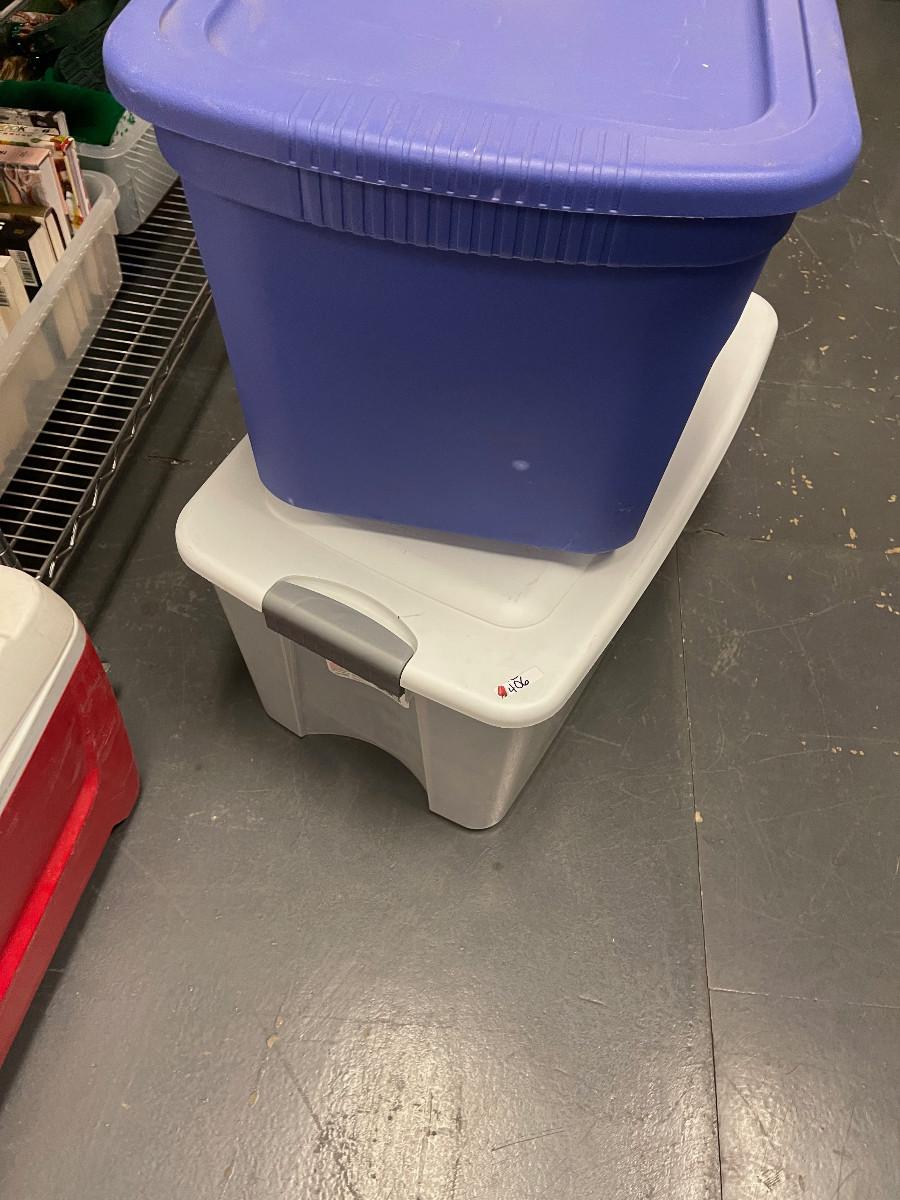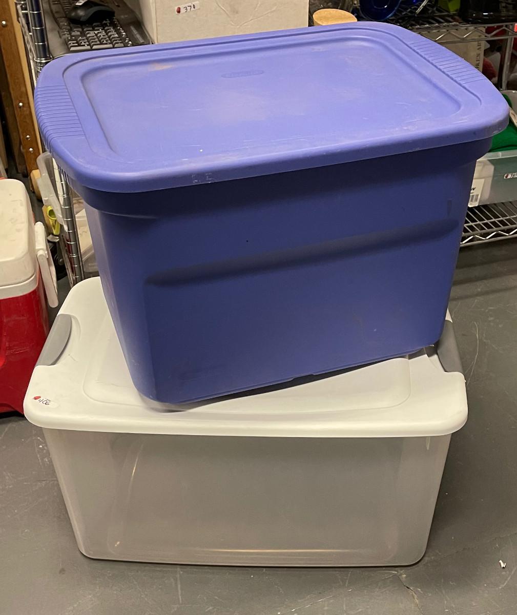 2 Storage Tubs, 1 clear, 1 blue with lids