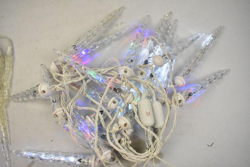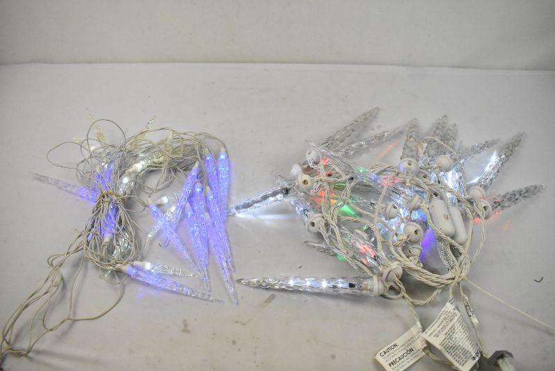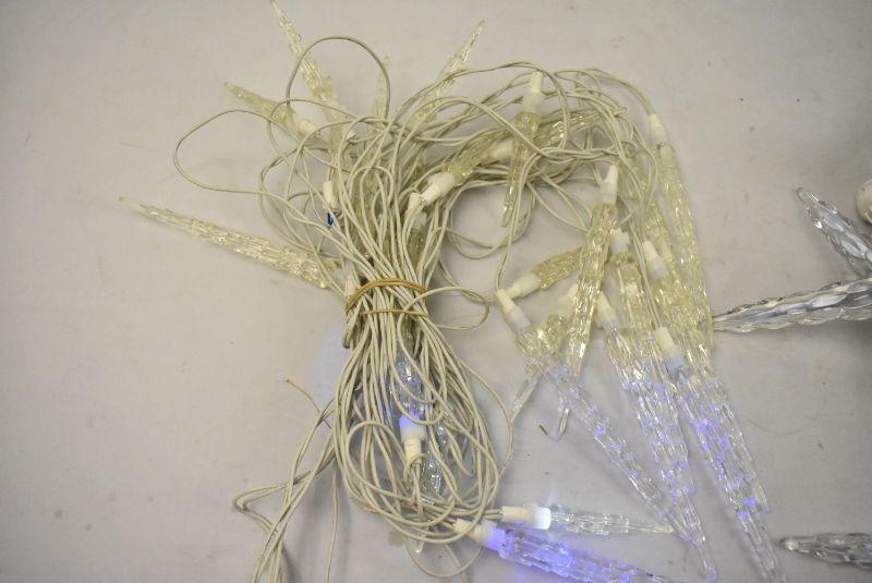 2 Strands of Icicle Lights: Large Blue/White & Rainbow Icicle - All Tested
