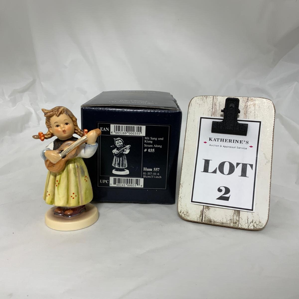 Strum Along with this Hummel! Sweet little girl with a stringed instrument. Figure comes in original box. Measures 3 3/8” tall. #035, Hum 557. Please see photos for details and condition. - No Cracks, Chips or Crazing noted. ::: Shipping is available on this lot. If you require shipping you must let us know at the close of the auction. We will coordinate with you after the item has been won. Shipping fees will include insurance up to or exceeding the value of all items being mailed. If you have any questions regarding this lot please contact the auctioneer either via this website, by direct email or by phone. PICK UP TIMES and other important information can be found in the TERMS and DESCRIPTION of the auction. Please take a look for pertinent information. Thanks!