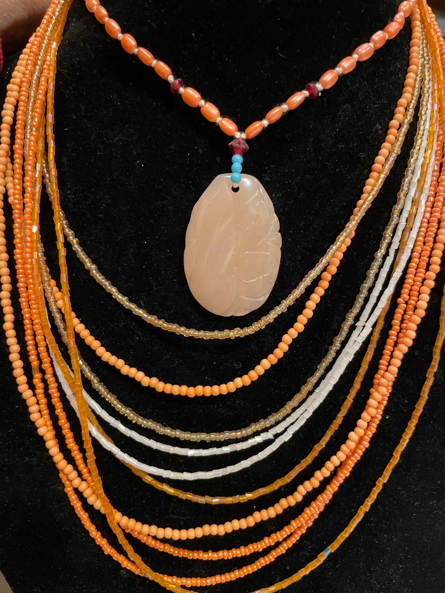 Multi layer tangerine bead necklace
