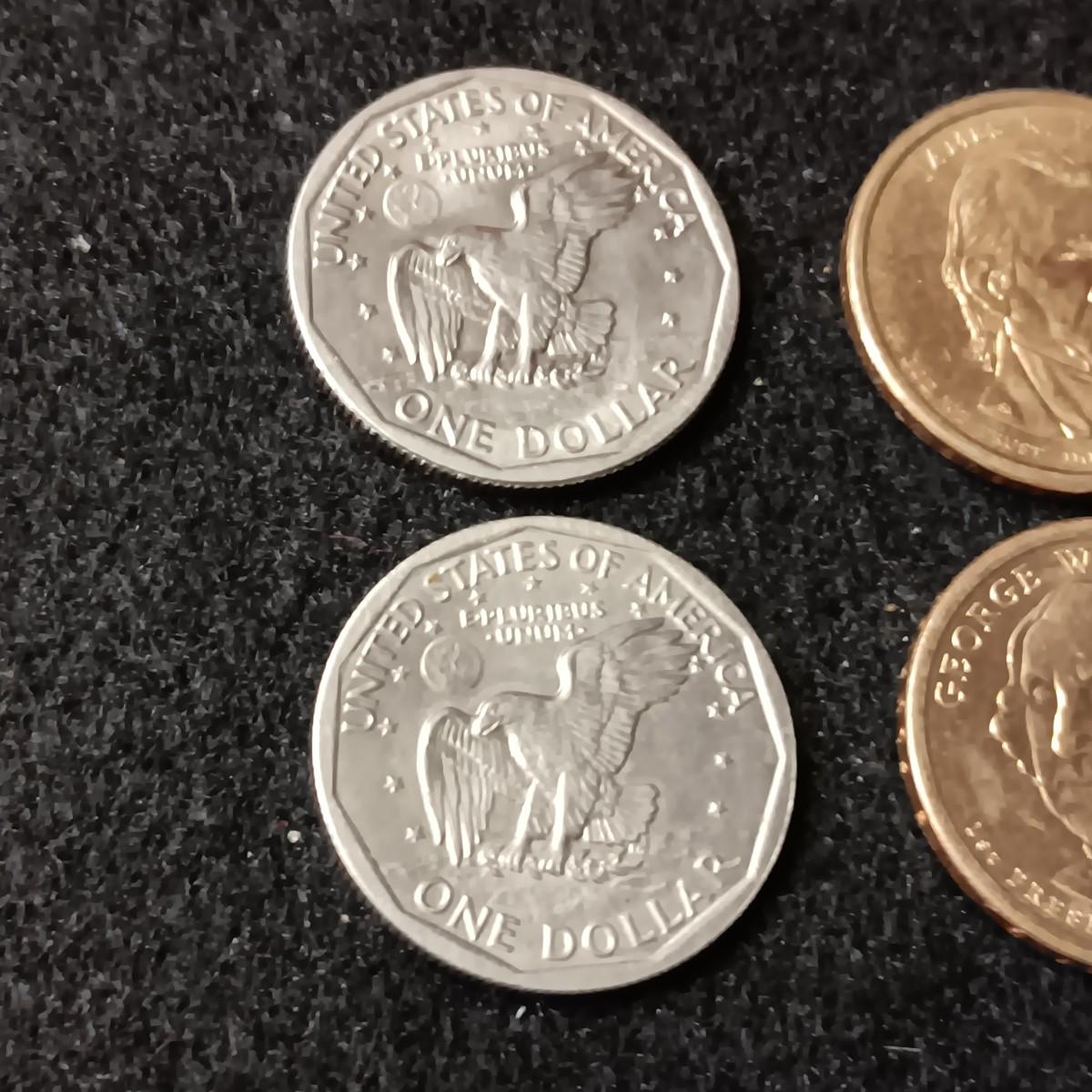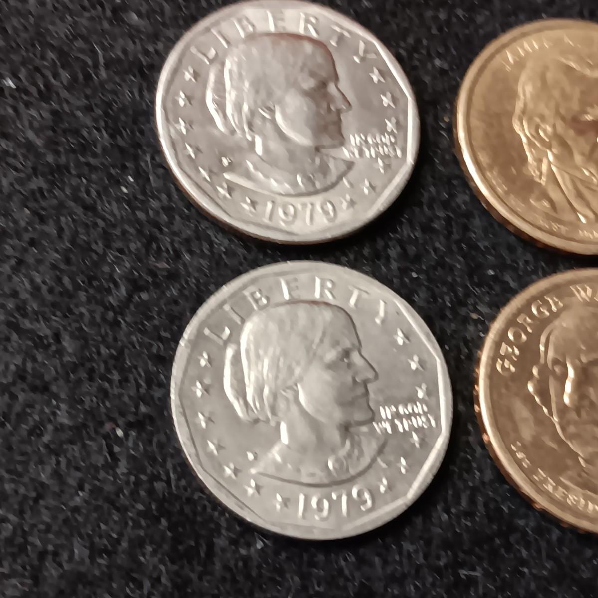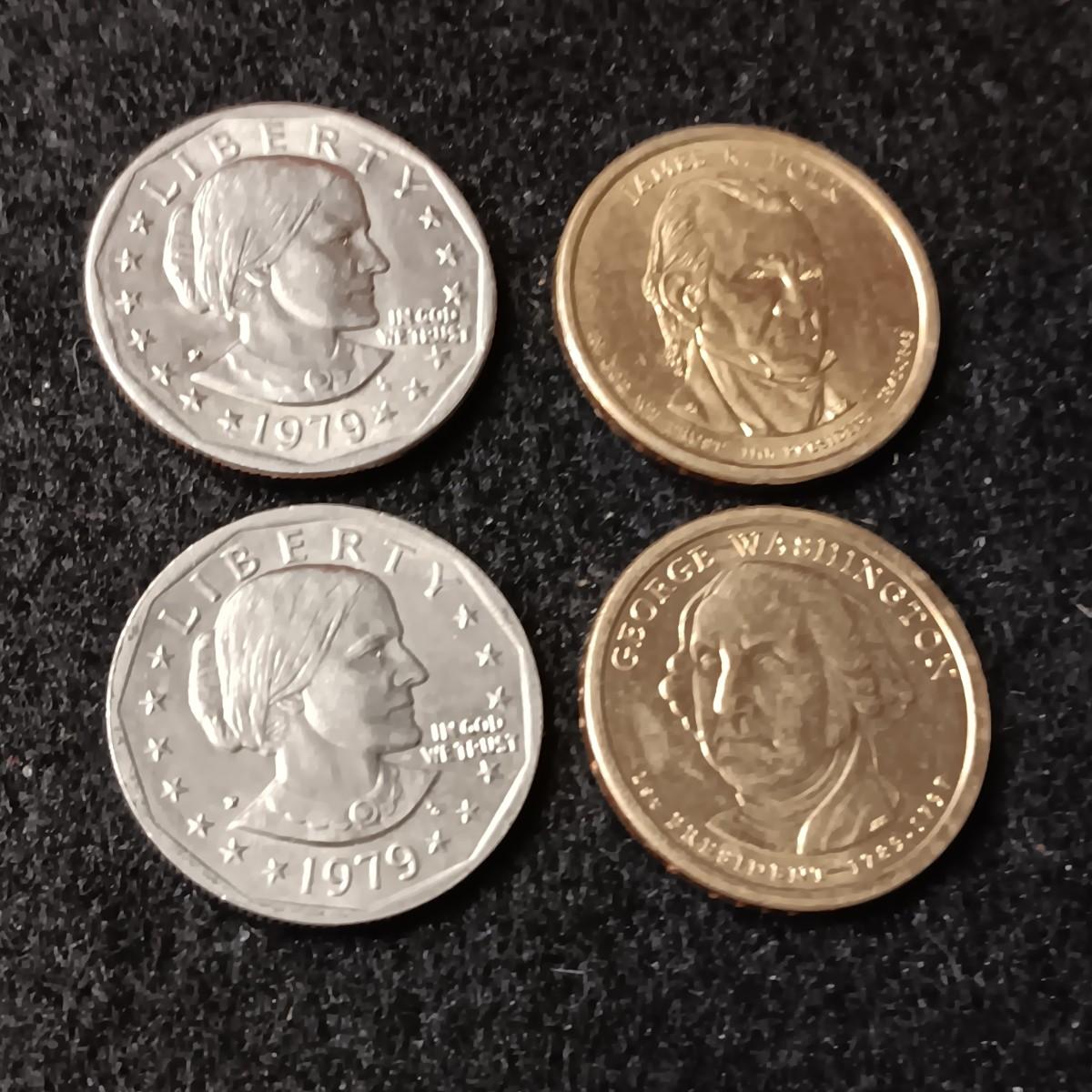 2 SUSAN B ANTHONY'S AND 2 PRESIDENT DOLLAR COINS
