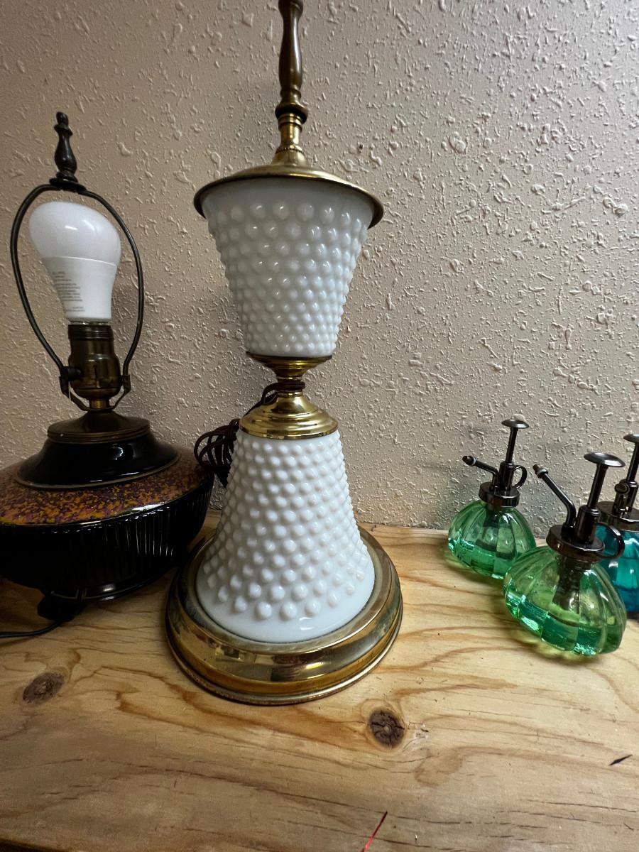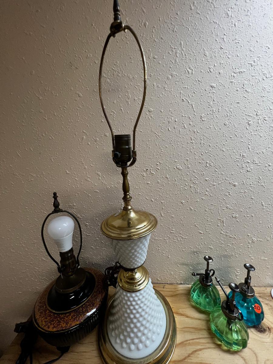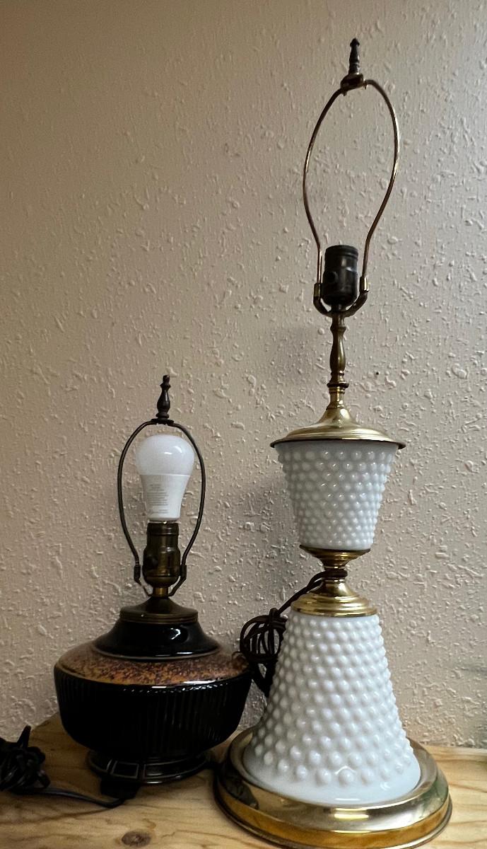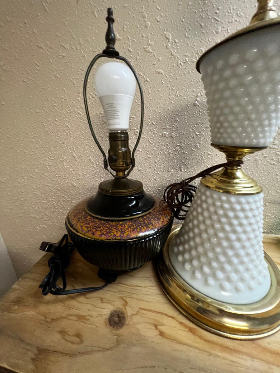 2 Table Lamps: 1 Milk Glass and 1 Brown Ceramic