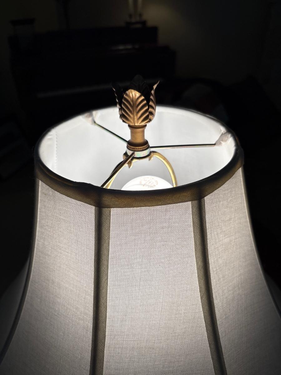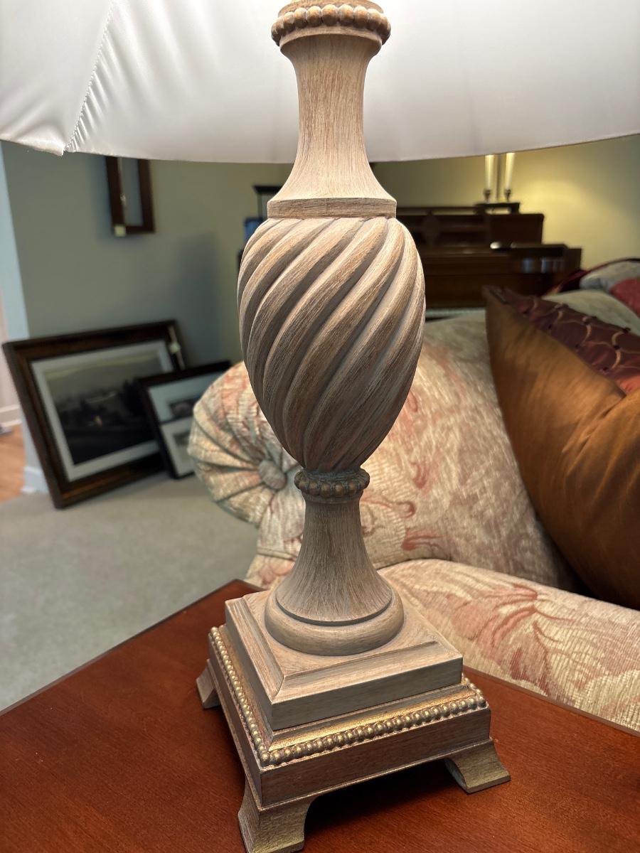29” tall to the top of the finial. Two identical lamps in this lot