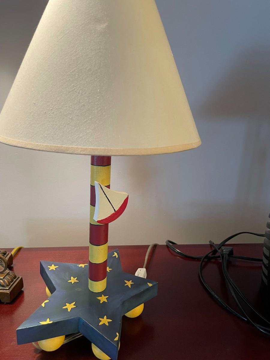 1 Traditional table lamp, 1 kids Red/White/Blue Lamp