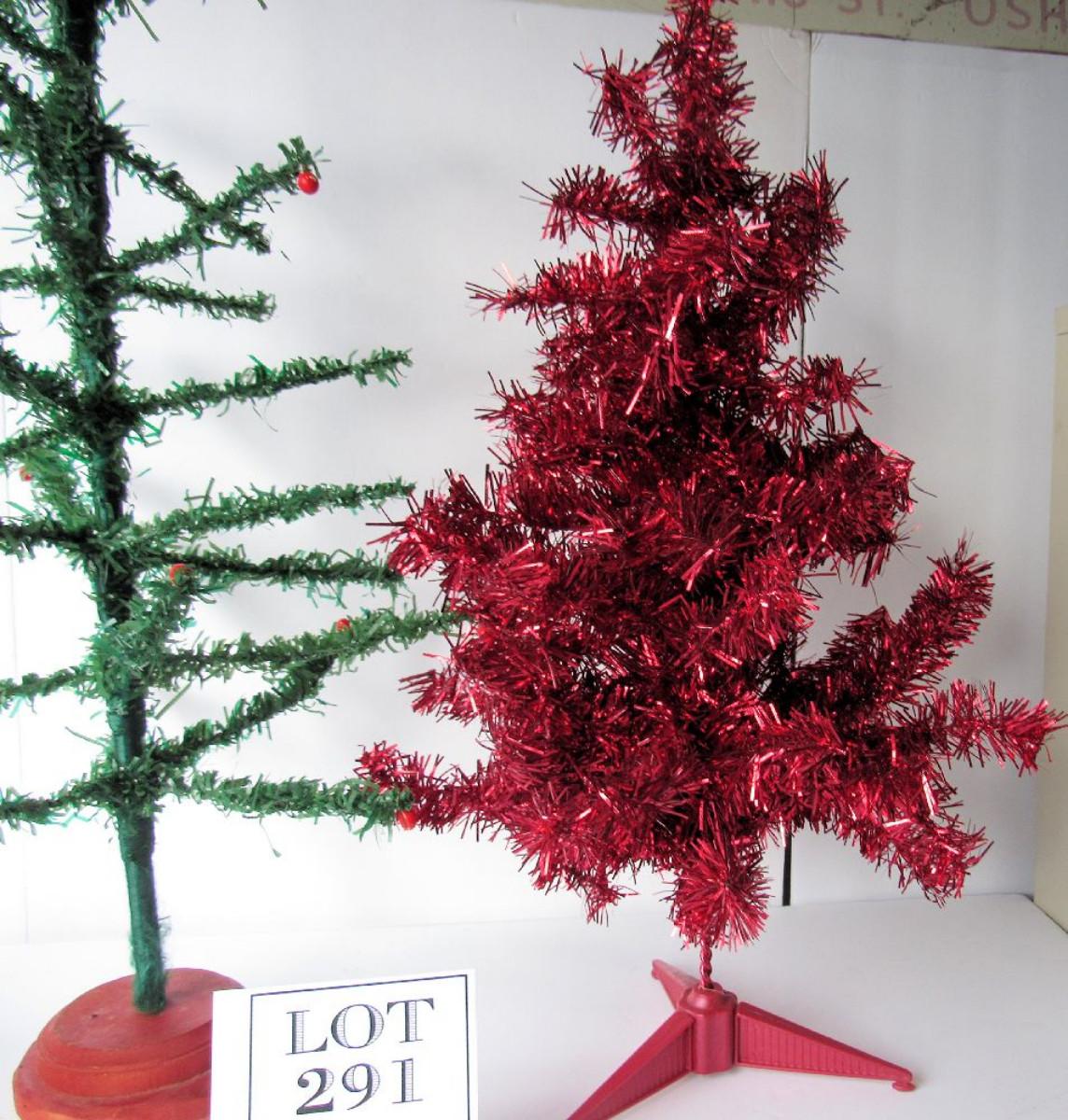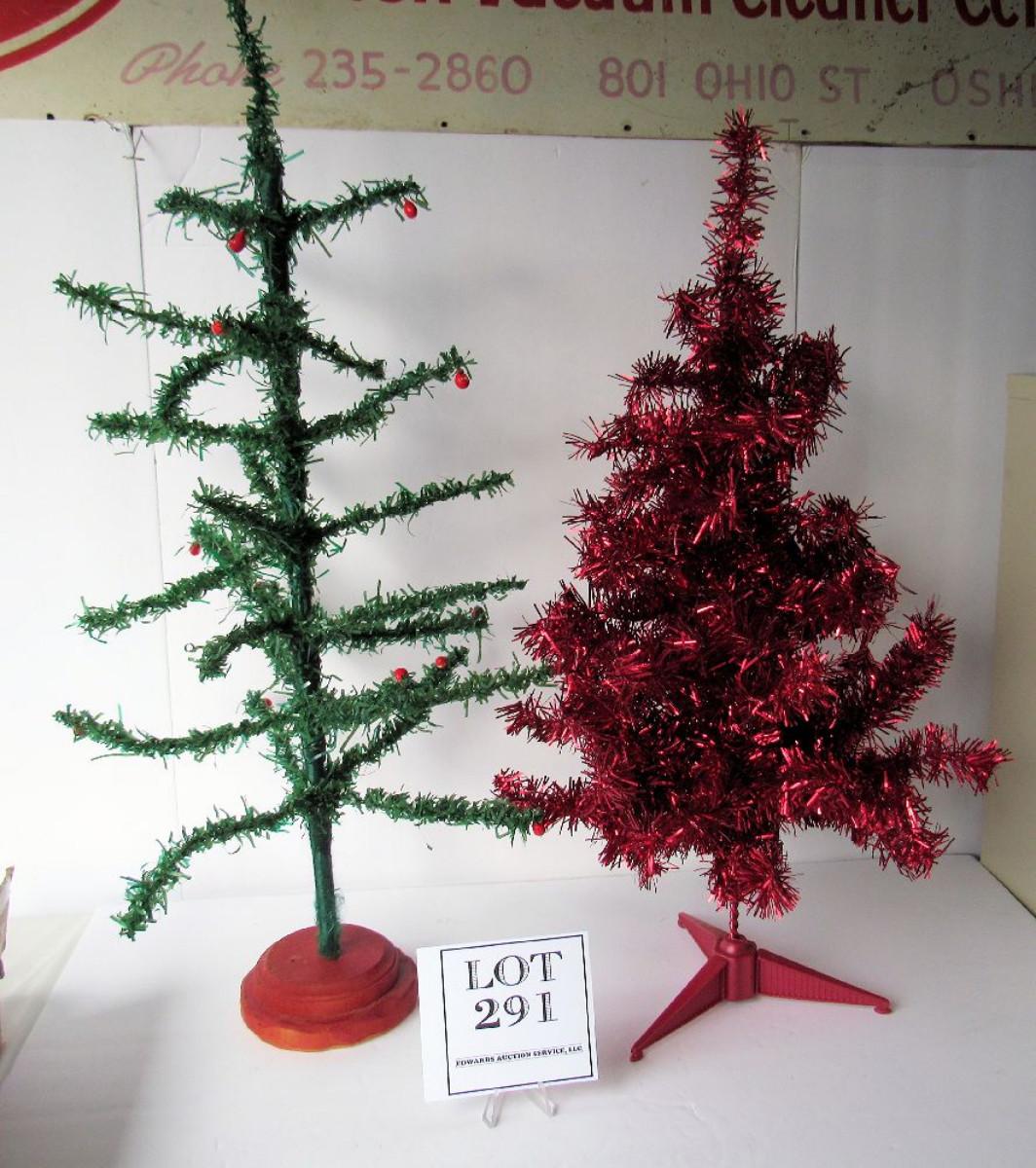 2 Table Top Christmas Trees, Plastic and Tinsel