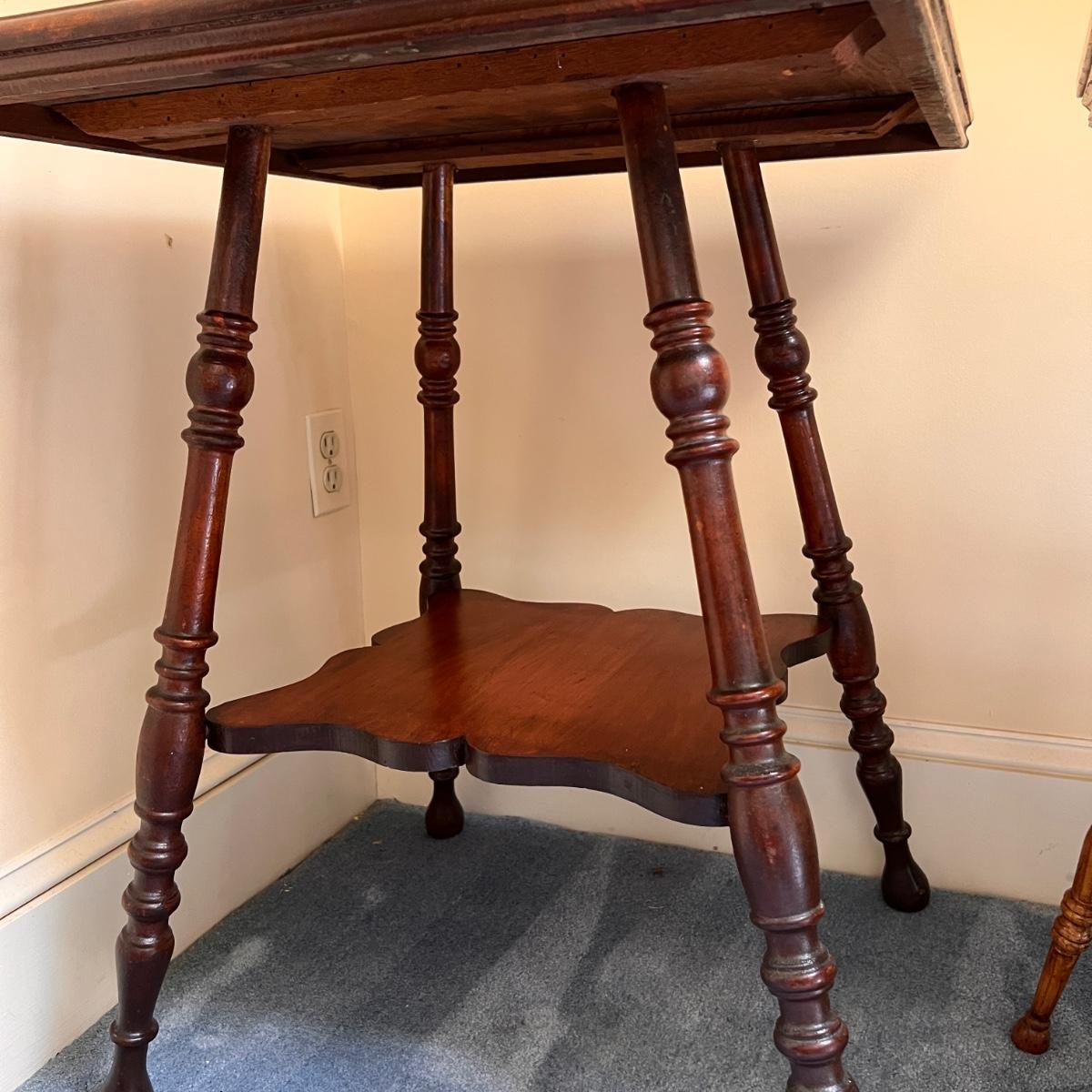 2 Vintage Two-Tier Square Wooden Parlor Tables