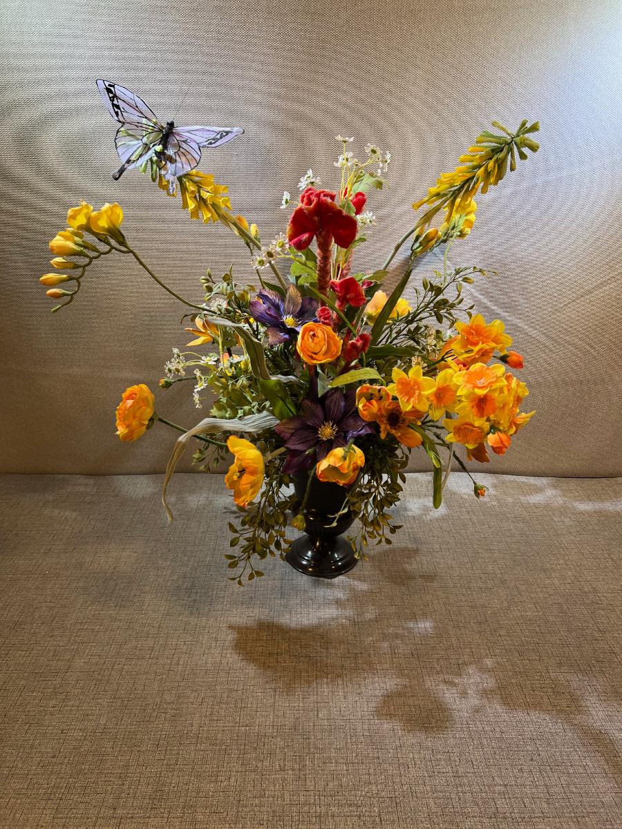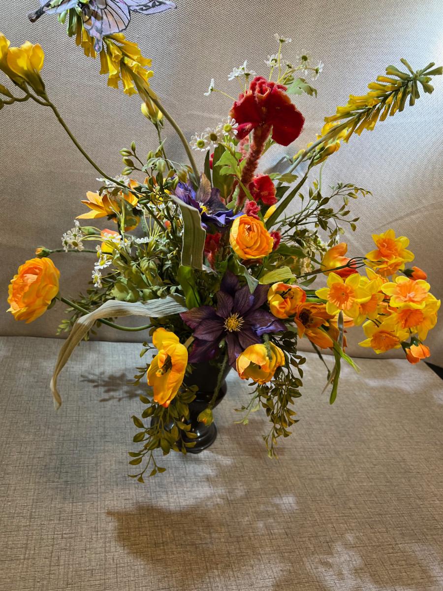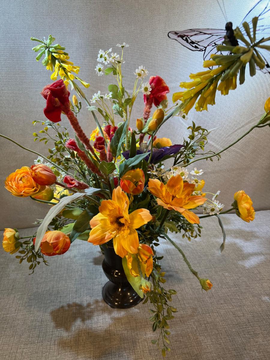 2' Tall Silk Flower Arrangement with Metal Base