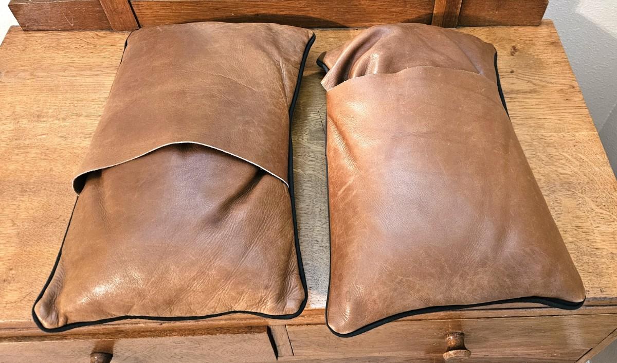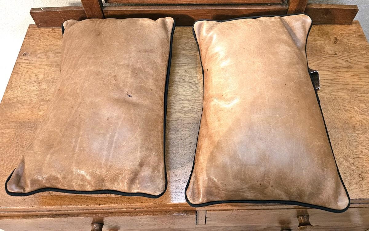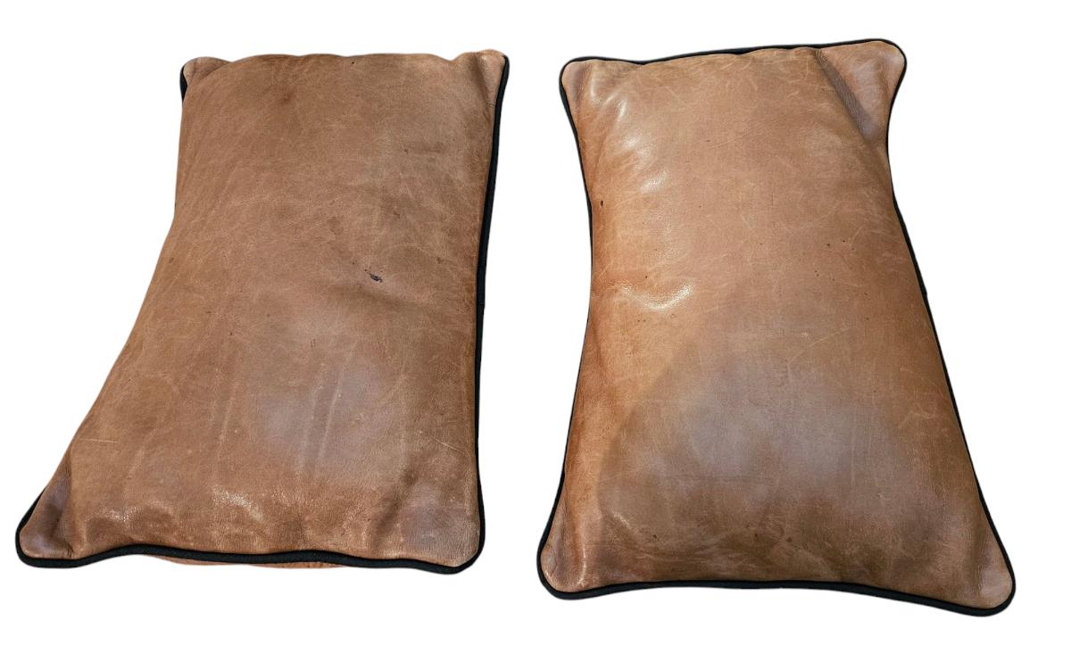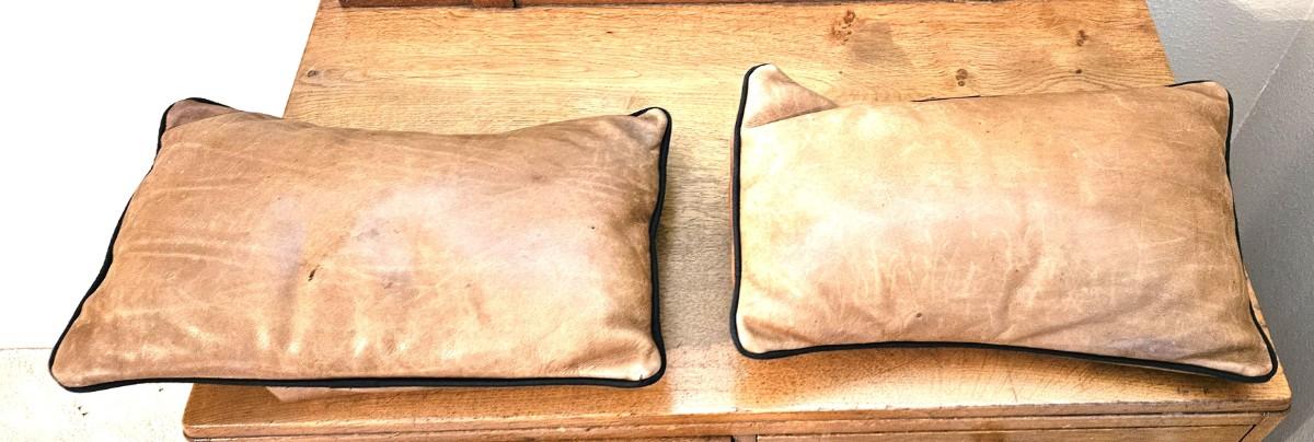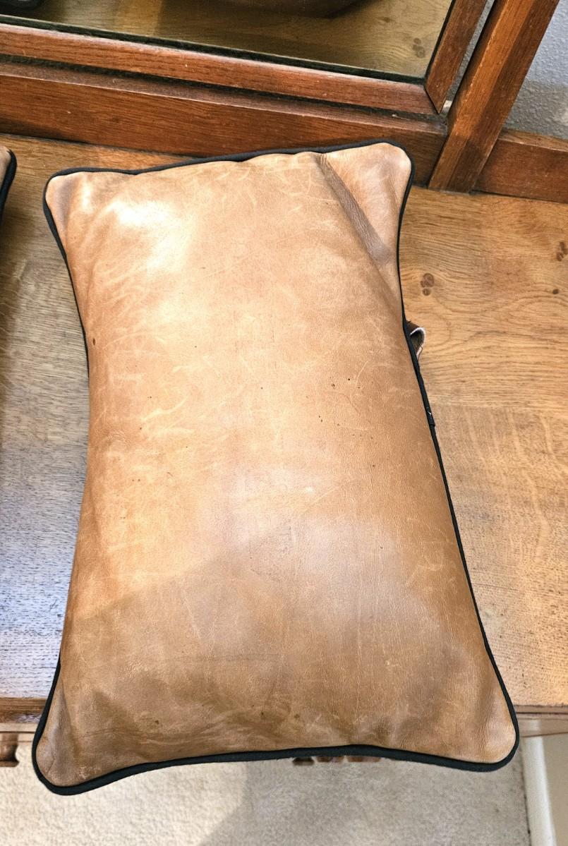 2 Tan Italian Leather Pillows