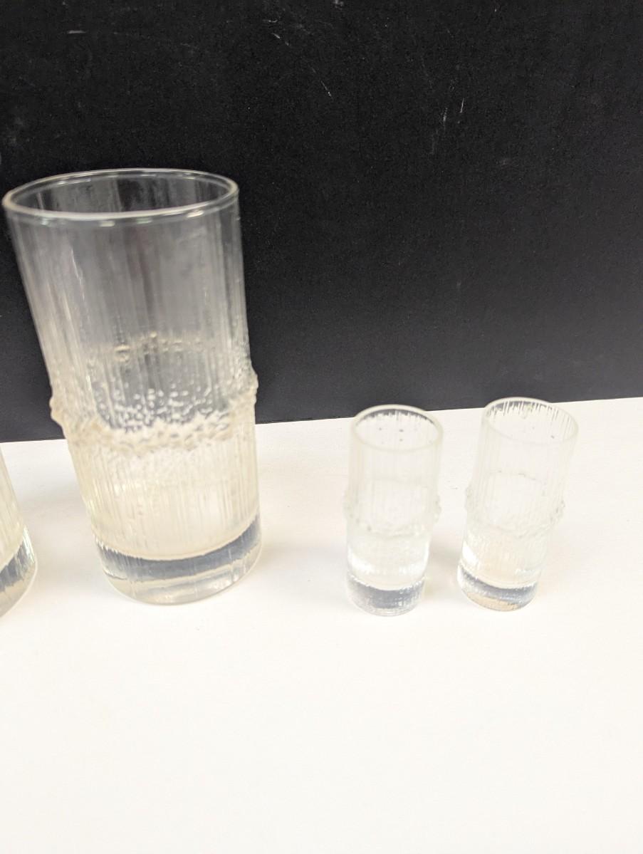 2 - Tapio Wirkkala Iittala Niva High Ball Glasses & 4 Shot Glasses Textured Ice Rain Design